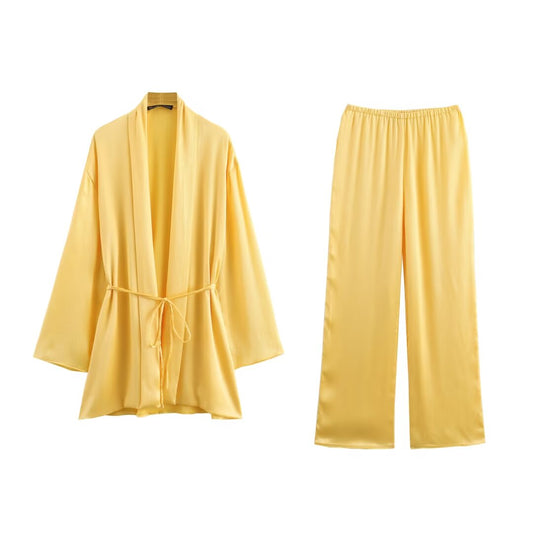 TGC “Grace in Bloom” Wide Shoulder Belted Blazer | Pastel Yellow & Baby Blue