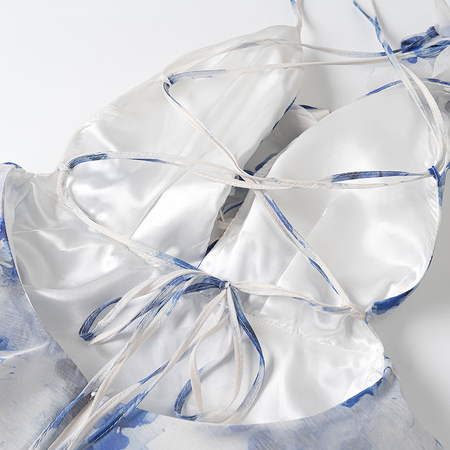 Perfect for vacations, brunches, or summer evenings, the ruffled hem and backless cut add a touch of soft drama, while the floral print keeps it light and joyful.