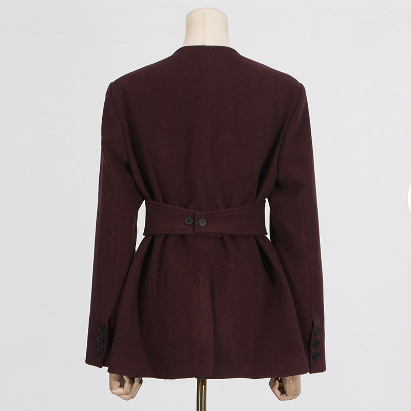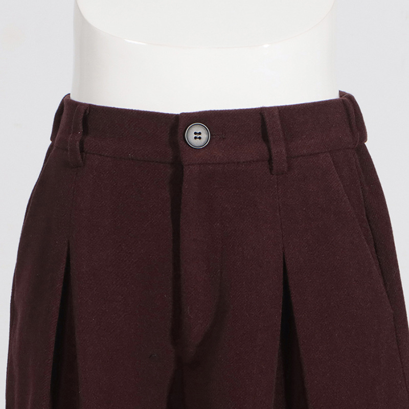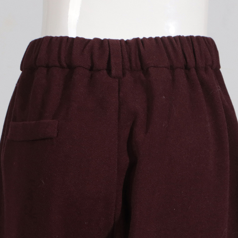 Winter Outfits | Capsule Wardrobe Elegant Burgundy Waist-Tight Top & Loose Wide-Leg Pants Two-Piece Set