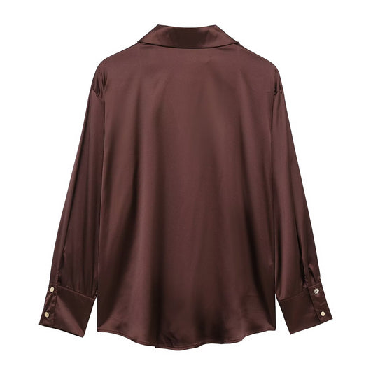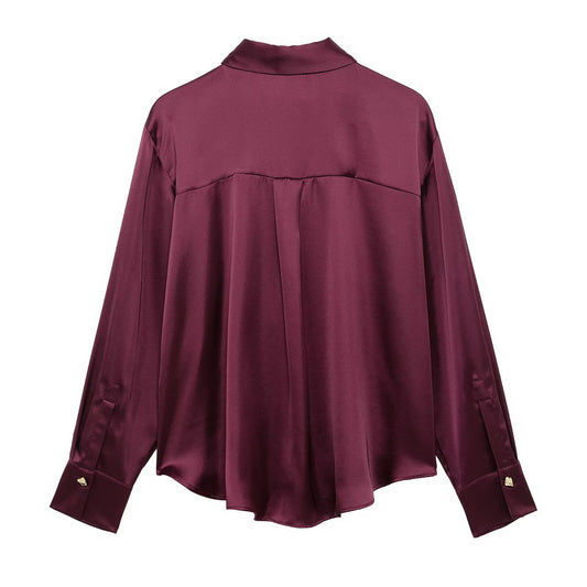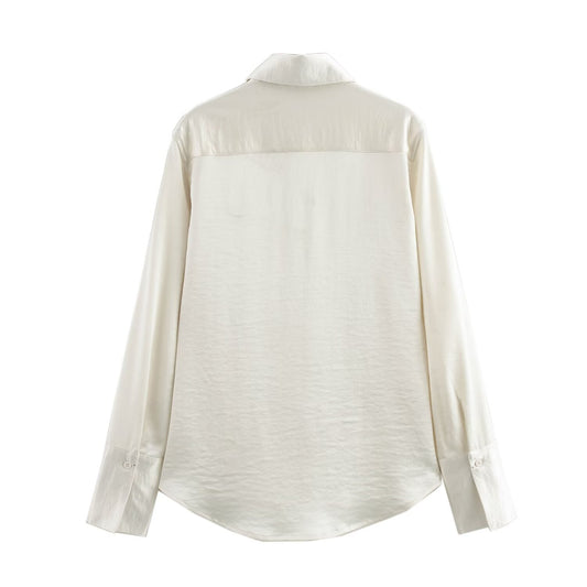 Autumn 2025 | Silk Satin Texture Long Sleeve Shirt with Pockets – Casual Office Essential