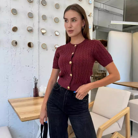 Burgundy Spring 2025 | Slim Fit Twisted String Knitted Angora Cardigan – Effortless Parisian Charm