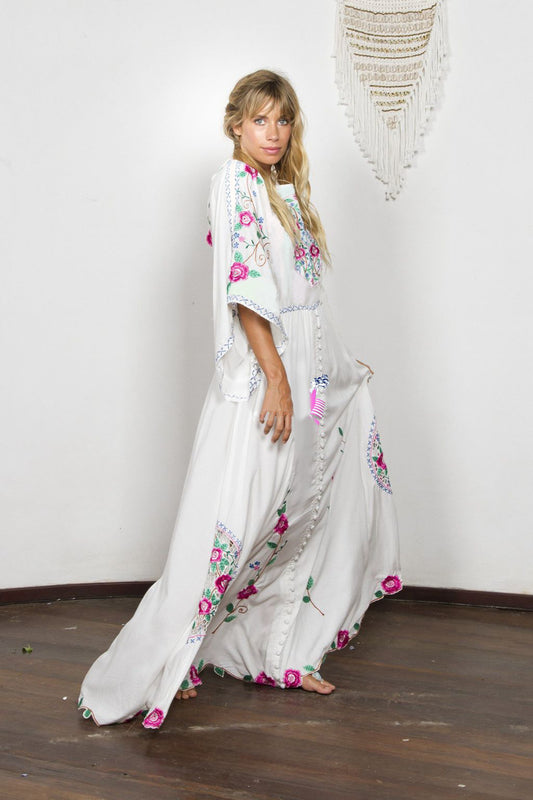 Vacation Outfits | Spring Summer Elegant Seaside Vacation Embroidered Maxi Dress