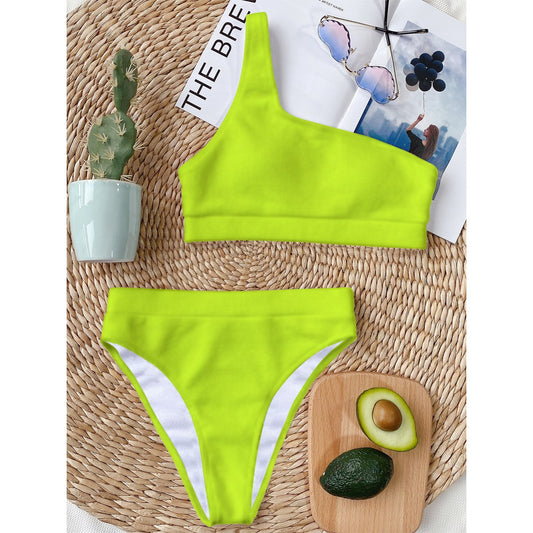 TGC FASHION Neon Yellow Aesthetic Single Shoulder High Waist Bikini