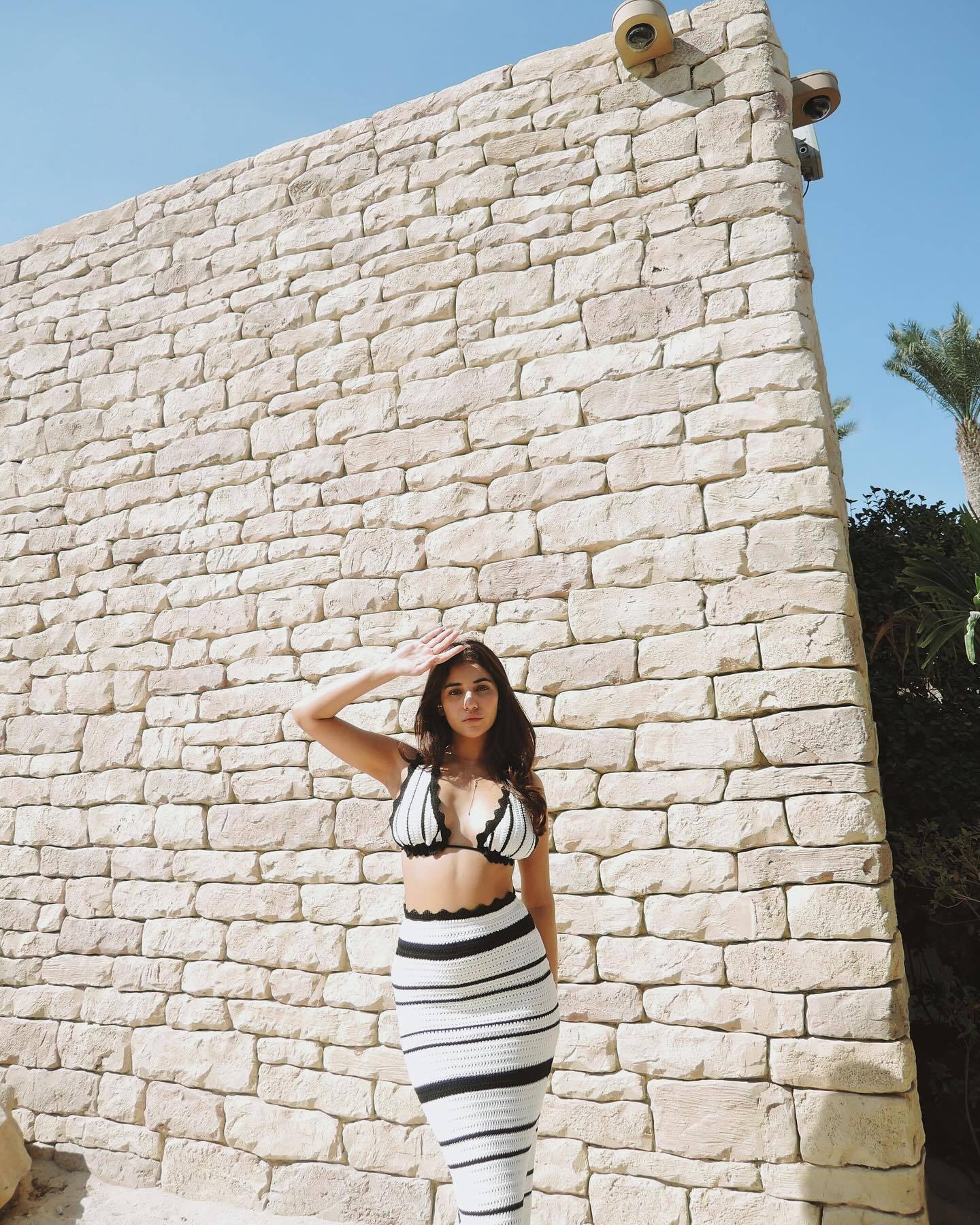 2024 Fashion Trends | Black and White Striped Bikini Top Skirt Outfit 2-piece Set