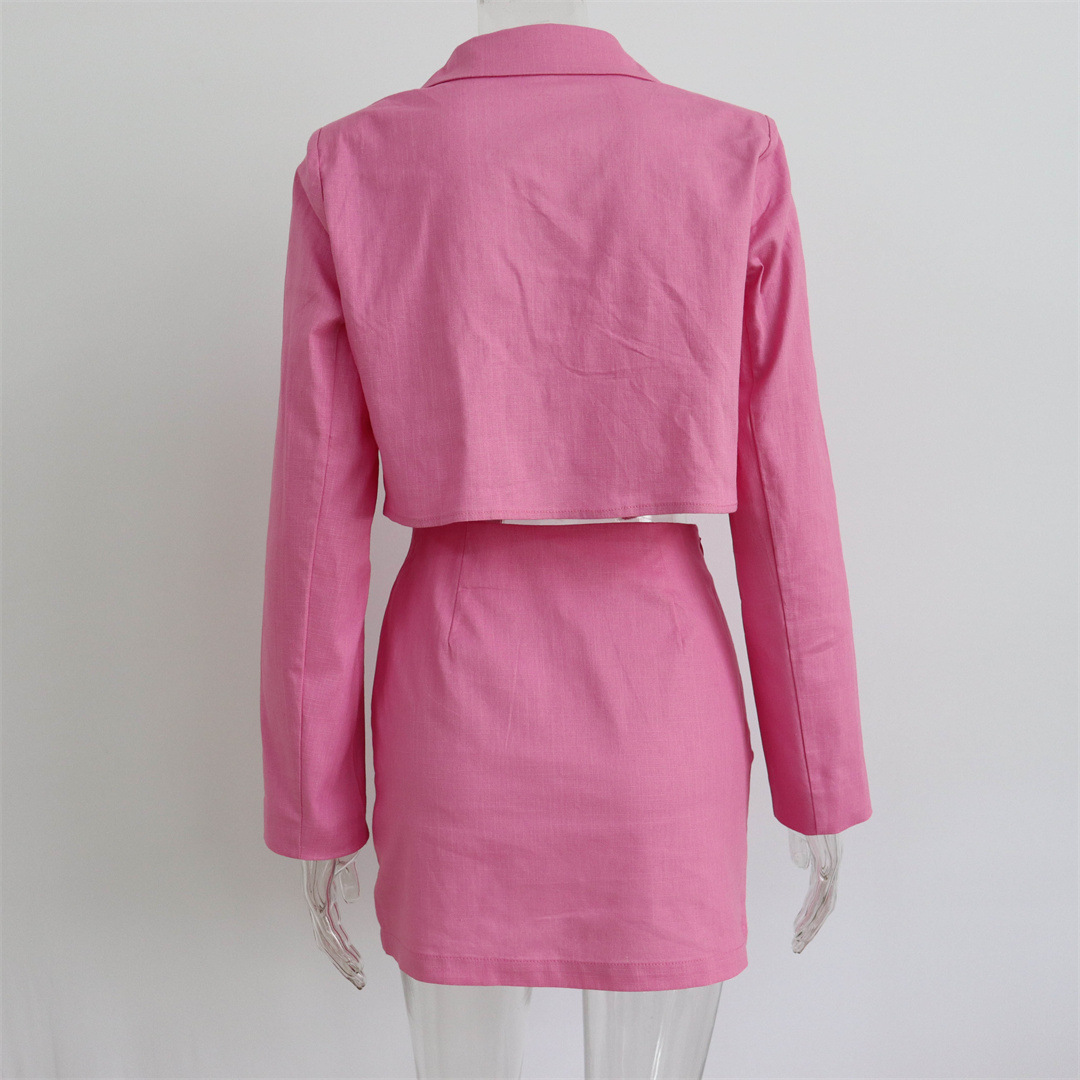 Welcome to TGC FASHION, your ultimate destination for building the perfect Capsule Wardrobe 2023. Introducing our latest addition to the collection: the Pure Cotton Pink Blazer Mini Skirt Summer Outfit 2-piece set.