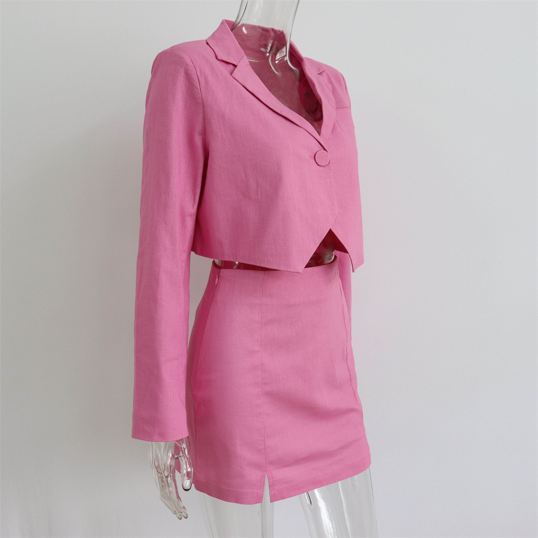 Capsule Wardrobe 2023 | Pure Cotton Pink Blazer Mini Skirt Summer Outfit 2-piece set.