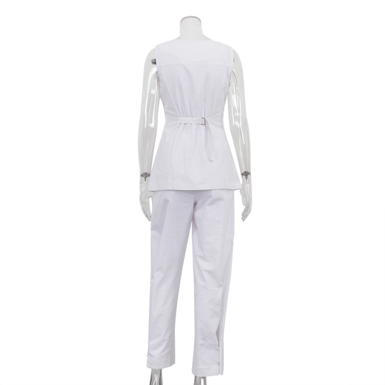 This Cotton Waist Slim Vest and Trousers Two-Piece Set offers a stylish and comfortable option for everyday wear. Made from soft cotton, this set features a fitted slim vest and matching trousers for a chic, casual look. Perfect for laid-back days or casual outings, this outfit combines comfort and modern style, making it an essential addition to your wardrobe. Ideal for women seeking versatile and breathable clothing