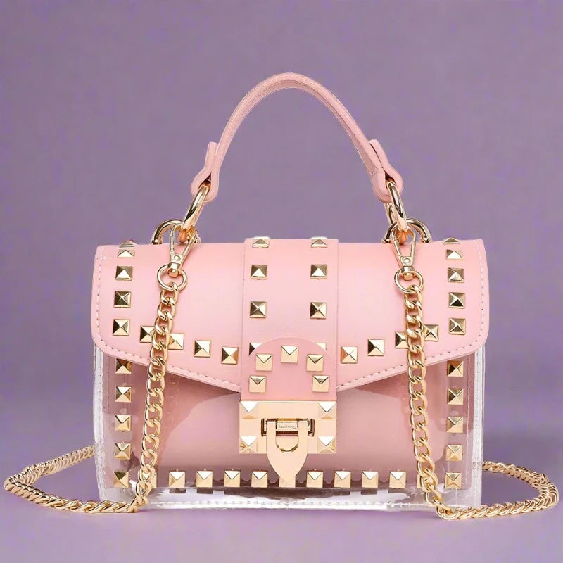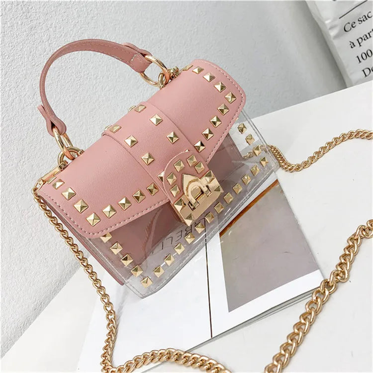 Summer Fashion | Classic Transparent Gold Studded Handbag Clear Jelly Purse