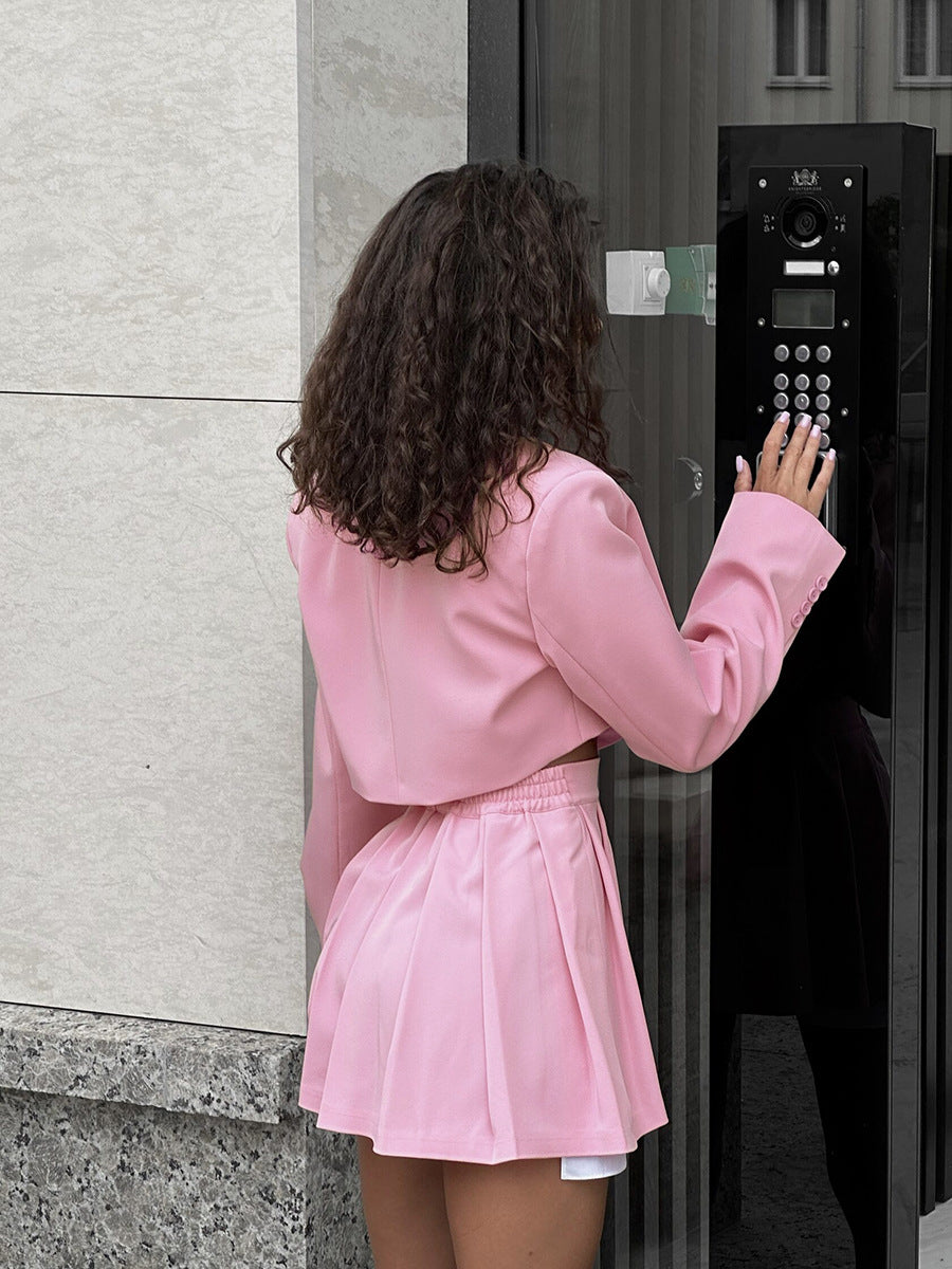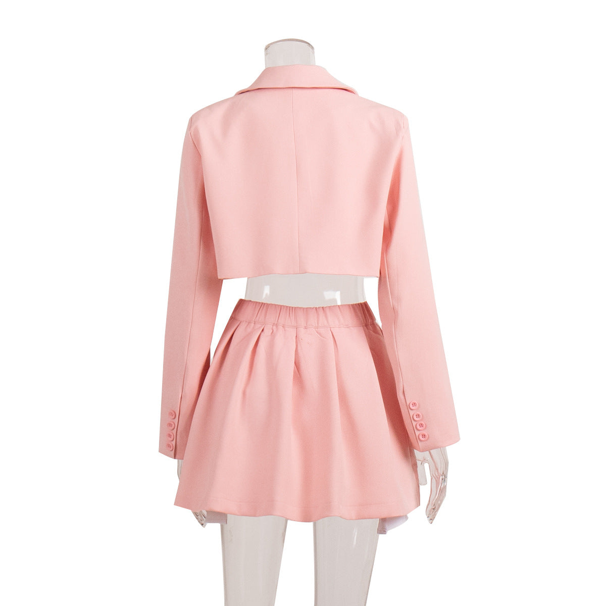 Elevate your summer wardrobe with our chic business casual 2-piece set. Crafted with a cropped jacket and skirt, this outfit exudes sophistication and exclusivity. Perfect for any occasion, make a statement with this luxurious ensemble.