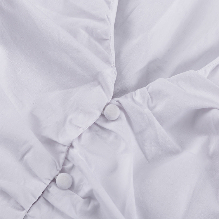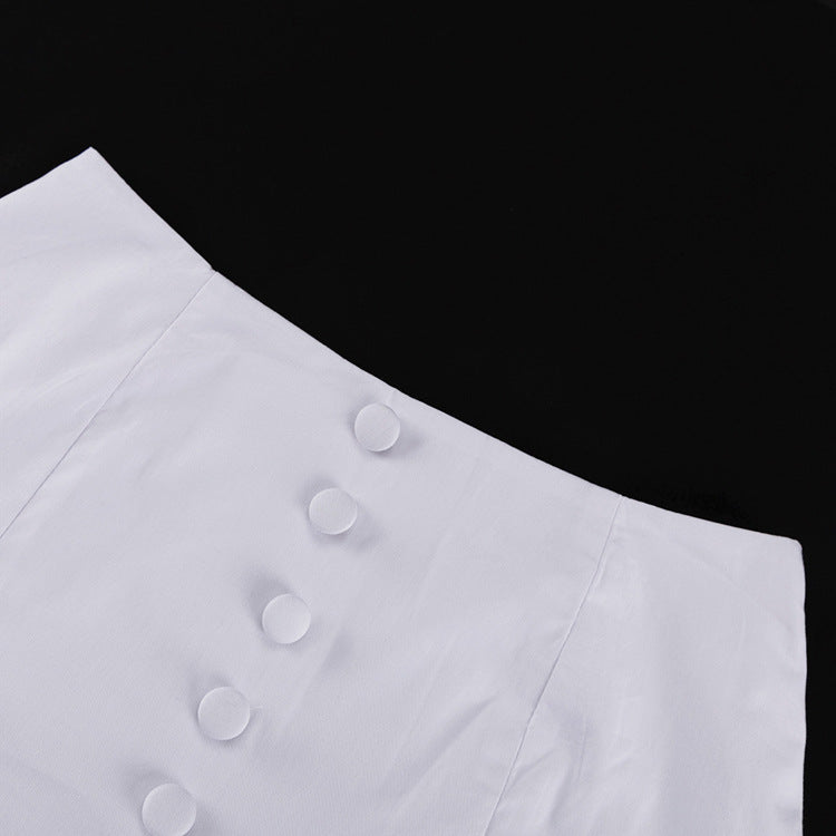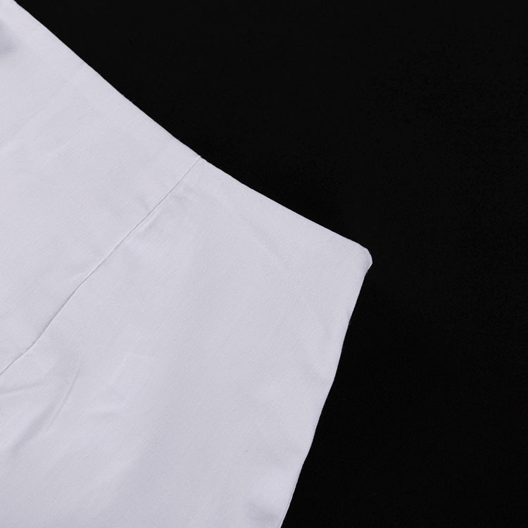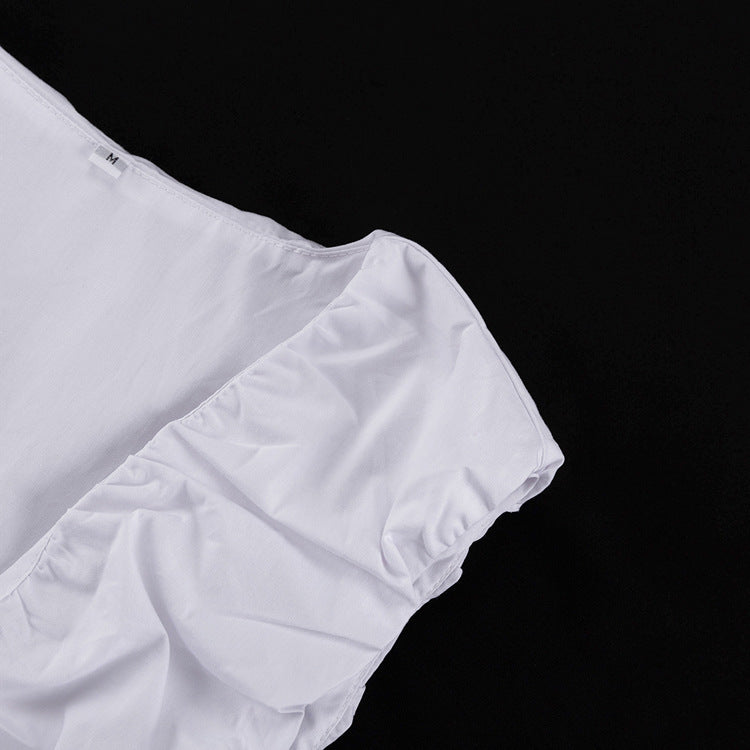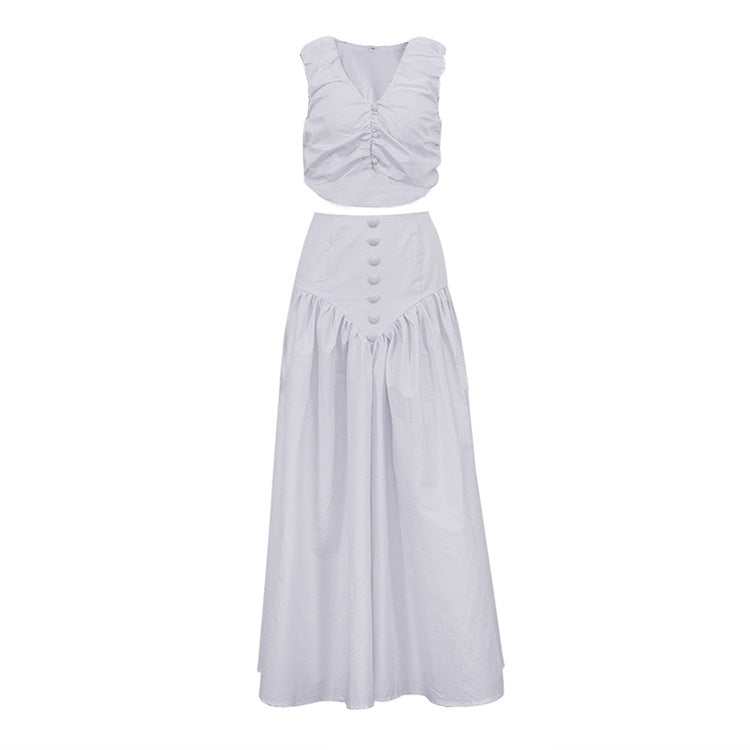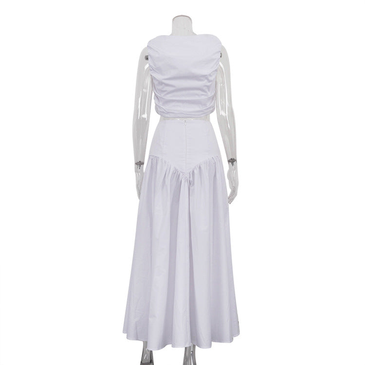 TGC Fashion Outfits, White Cotton French Pleated Vest High Waist Drop Waist Skirt Outfit 2-piece Set