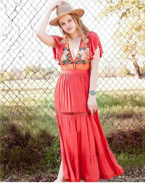 Vacation Outfits | Divine See Through Flower Embroidery Maxi Dress