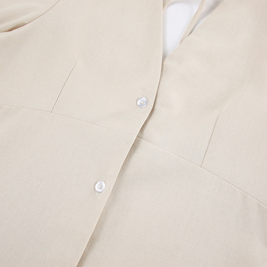 The Beige Aesthetic Cotton Long Sleeve V Neck Maxi Dress exudes elegance with its V-Neckline and 3/4 Puff Sleeves. This dress features subtle elements like Buttons and a Tie detail, adding a touch of refinement to your look.The French Beige Cotton Linen Puff Sleeve Dress offers a chic and relaxed silhouette, perfect for casual outings or special occasions. The Backless design and Loose fit make it a stylish and comfortable choice for Summer.