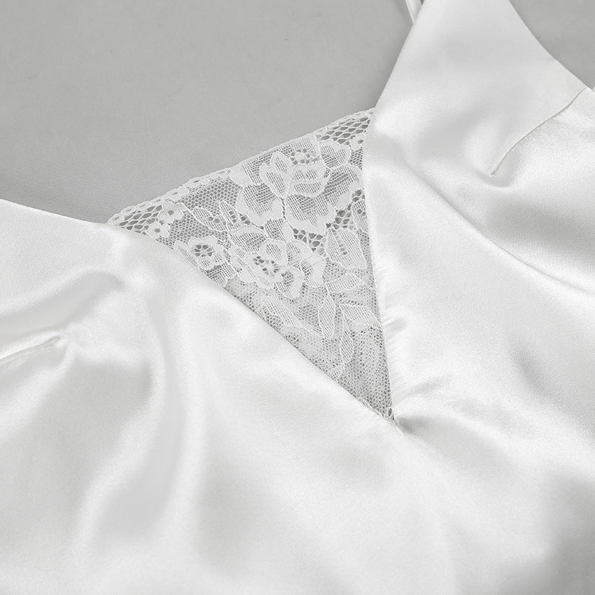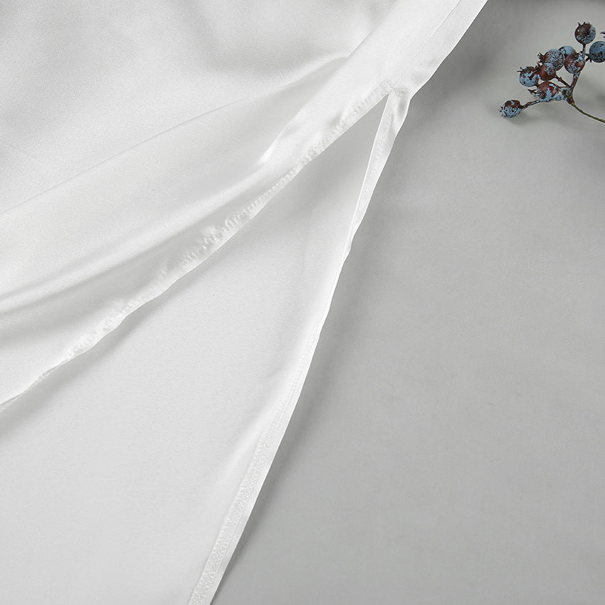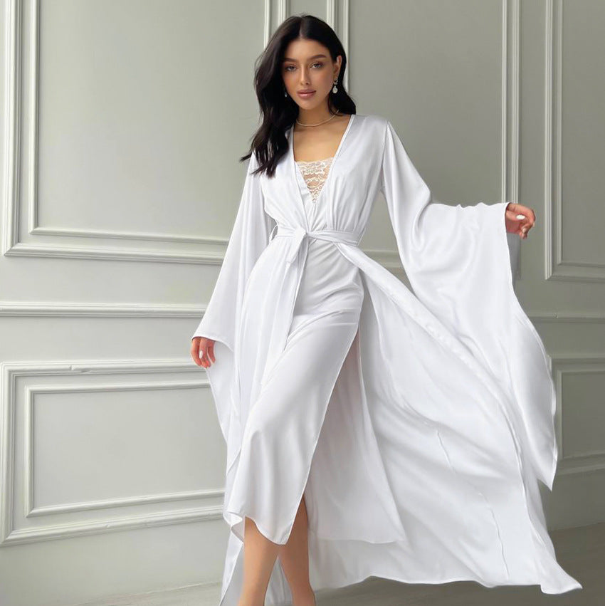 The Autumn Simple Satin Sexy Cami Dress Two Piece Pajamas offer a chic and effortless look, whether you're unwinding after a long day or enjoying a lazy weekend morning. The Long Sleeve Robe adds an extra layer of comfort and warmth, making it perfect for cooler evenings.