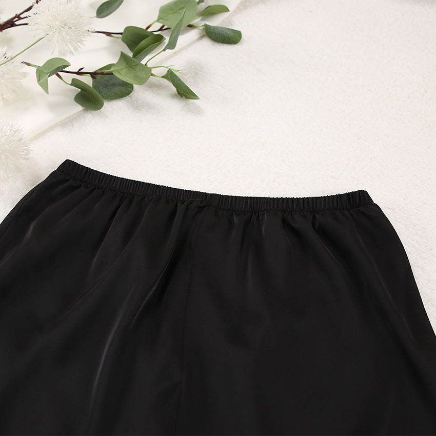 The Spring Summer Blue Thin Women Home Silk-like Solid Color Pajamas offer a chic and effortless look, whether you're relaxing indoors or running errands outside. The Silk-like fabric provides a smooth and luxurious feel against the skin, ensuring maximum comfort all day long.