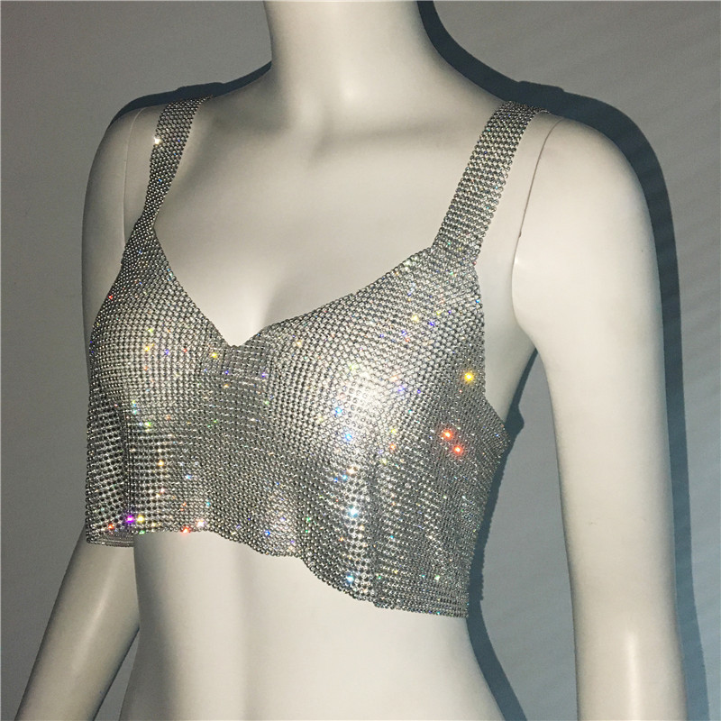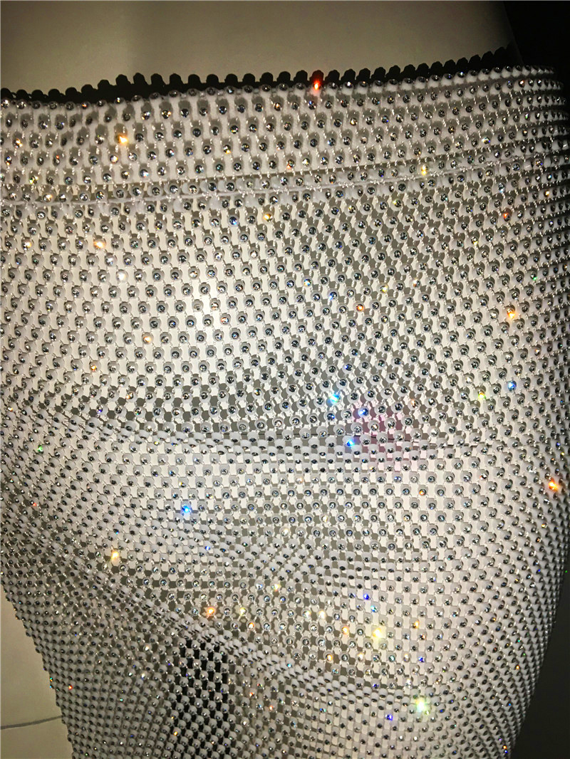 Dazzle in the spotlight with our Metallic Diamond Rhinestone Crop Top Skirt Outfit – the epitome of sexy sophistication.