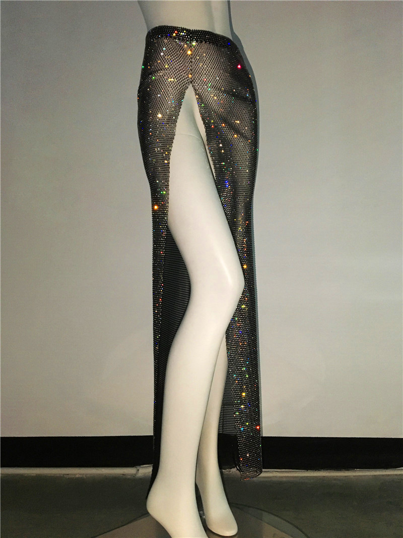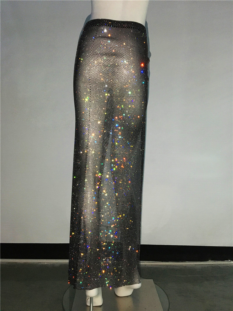 This outfit is designed to make you shine with intricate sequin and rhinestone detailing, while the alluring split adds an extra touch of glamour. Whether you're hitting the town or attending a special event, this ensemble promises to turn heads and leave a lasting impression. Embrace the allure of the night with our Metallic Diamond Rhinestone Crop Top Skirt Outfit. #FashionTrends2024 #Metallic