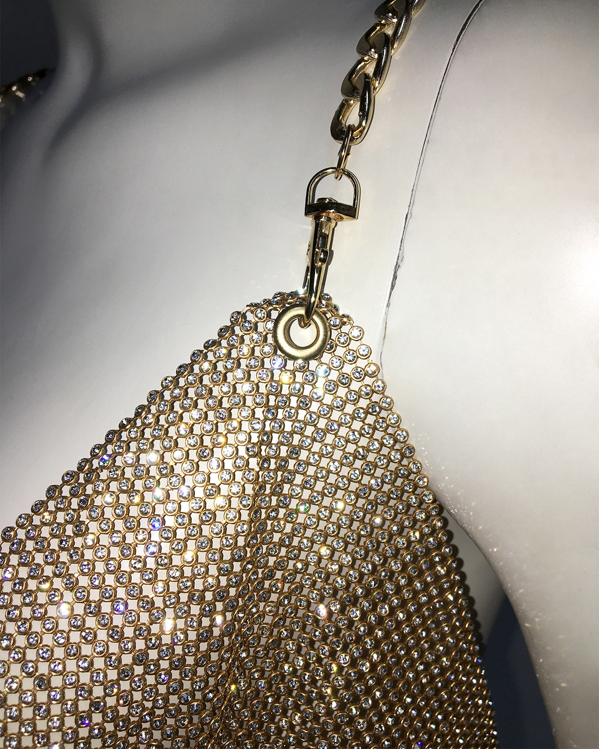 2024 Fashion Trends | Metallic Rhinestone Backless Top