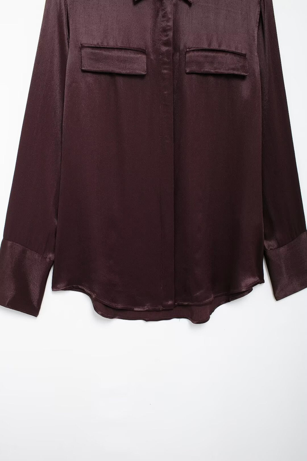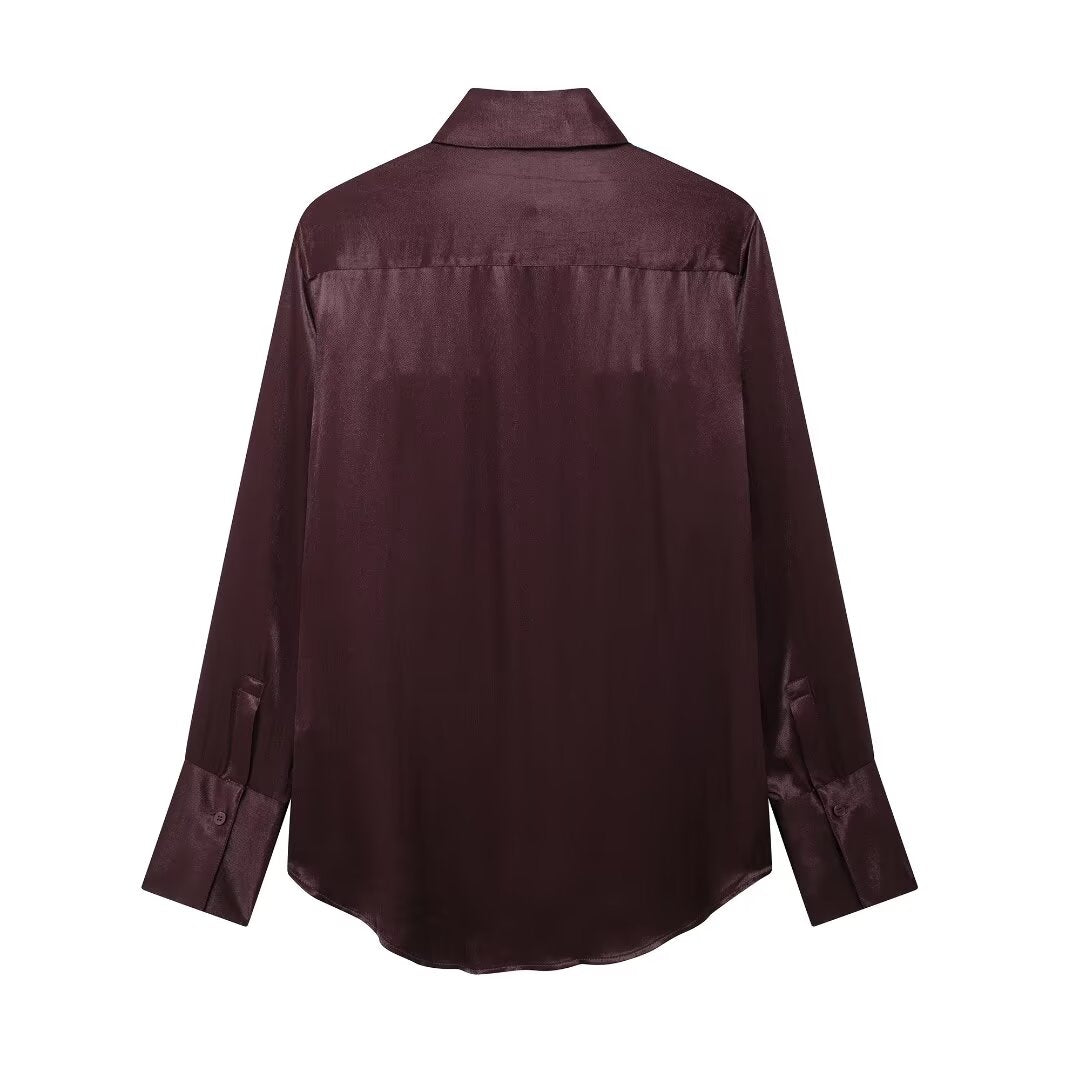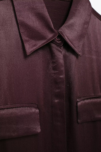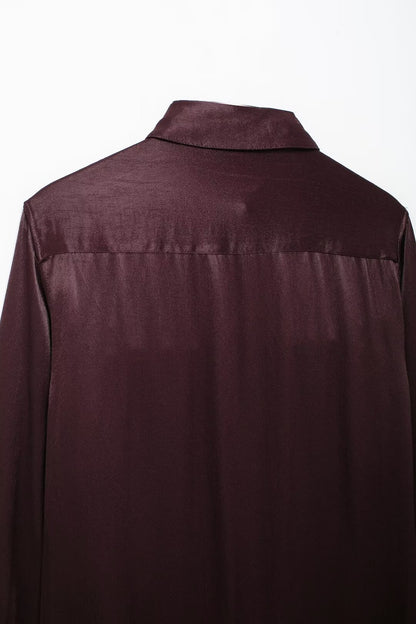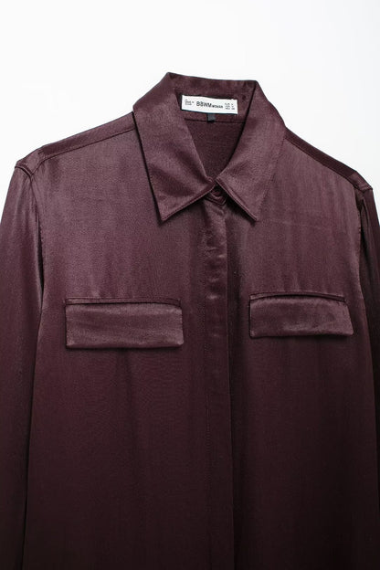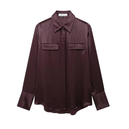 Autumn 2025 | Silk Satin Texture Long Sleeve Shirt with Pockets – Casual Office Essential
