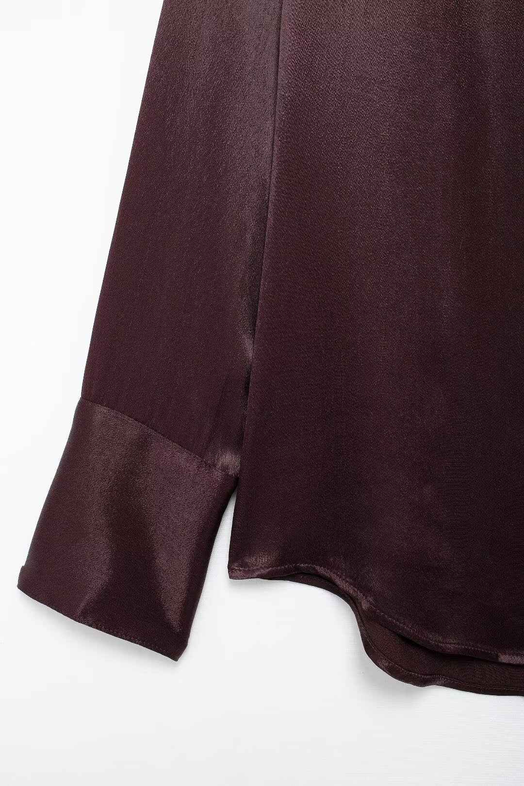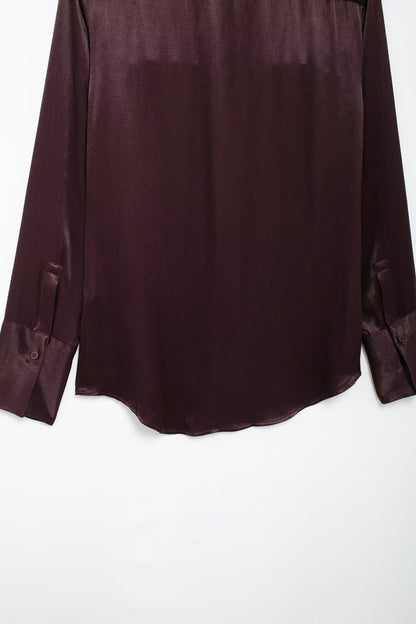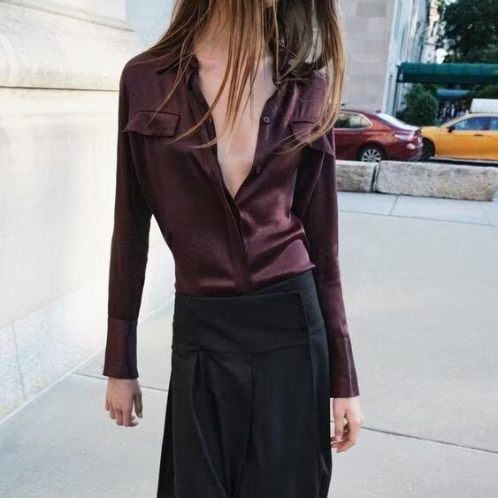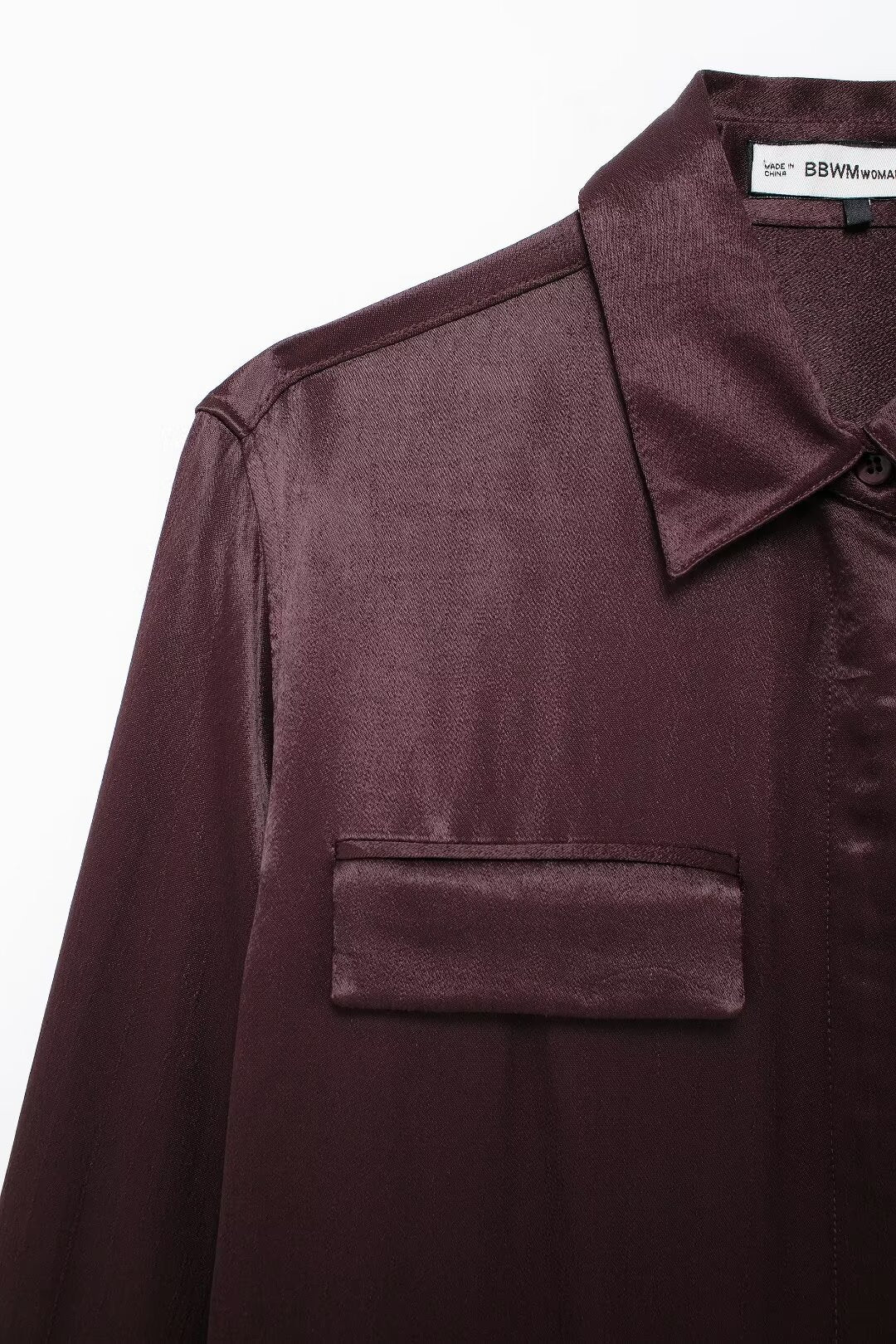 Autumn 2025 | Silk Satin Texture Long Sleeve Shirt with Pockets – Casual Office Essential