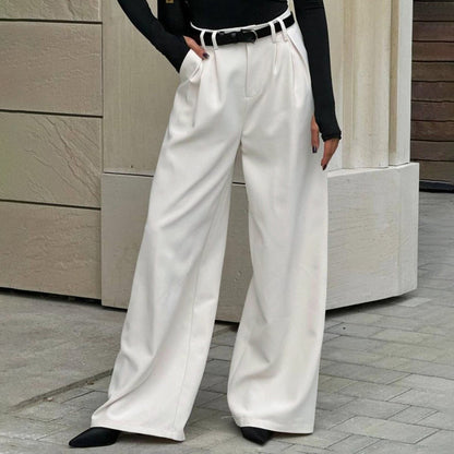 Step into your CEO era with the Boss Babe Wide-Leg Trousers. These solid color high-waisted pants serve effortless boss energy, pairing a loose, flowy fit with tailored details like pockets, a zipper closure, and a polished folded design. Made from breathable polyester for seasonless style, they're perfect for leveling up your business casual look or flexing casual-chic vibes on the weekends. Whether you're owning the office or hitting brunch with the crew, these wide-leg trousers from TGC FASHION keep your fit fresh, powerful, and totally on point.