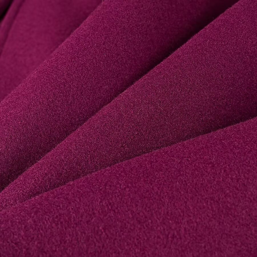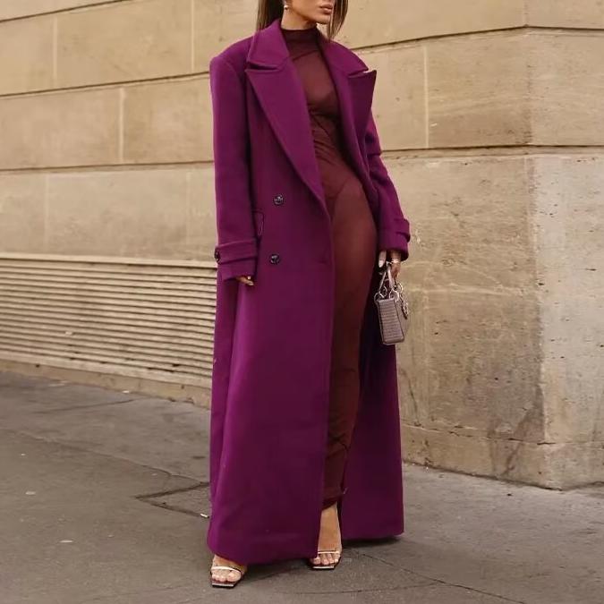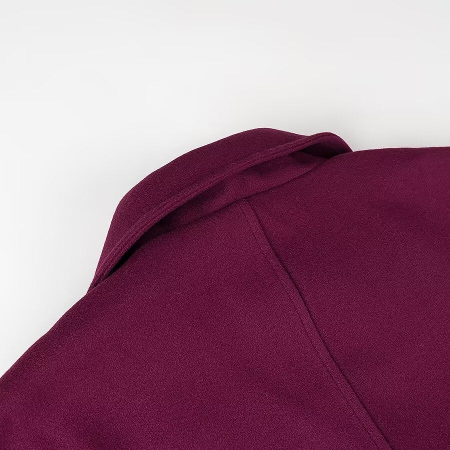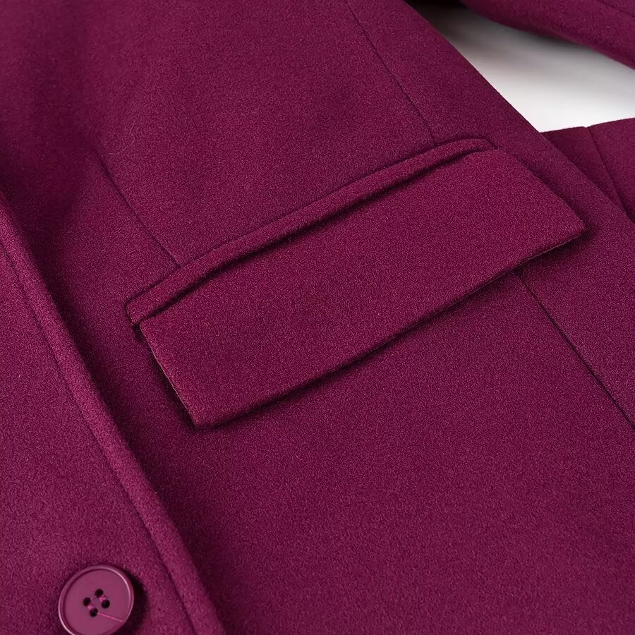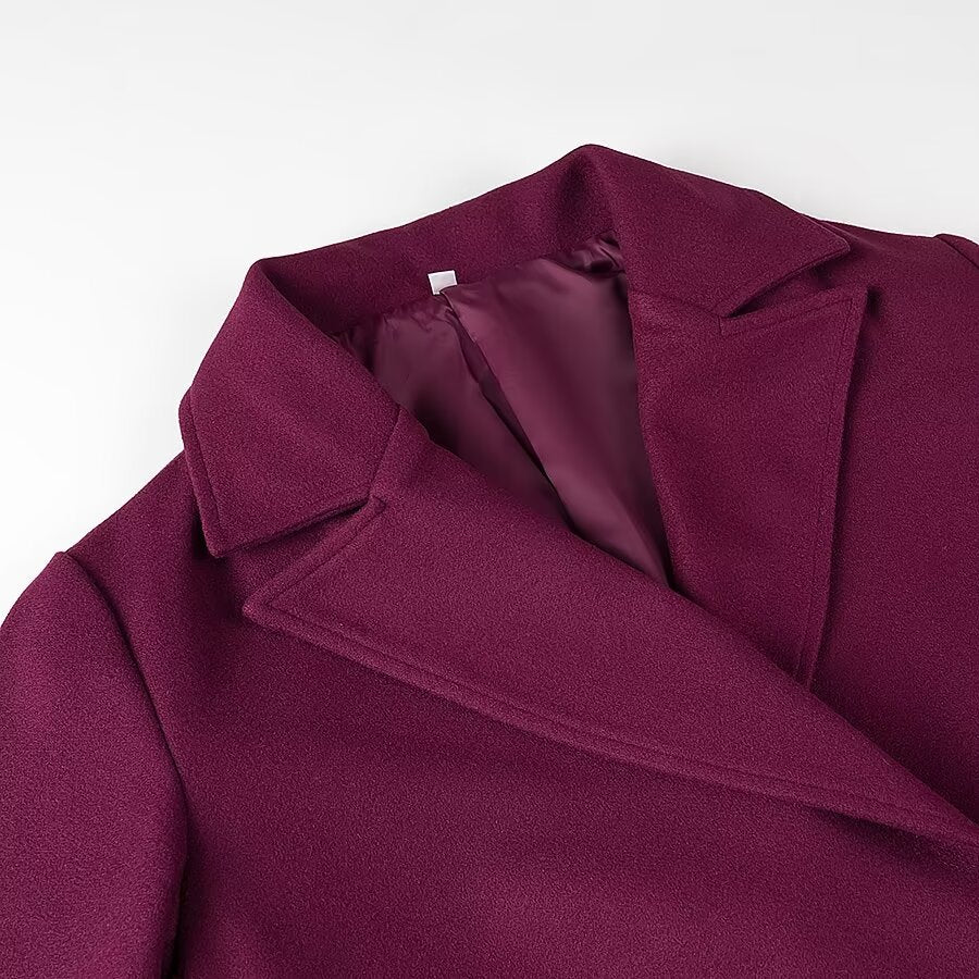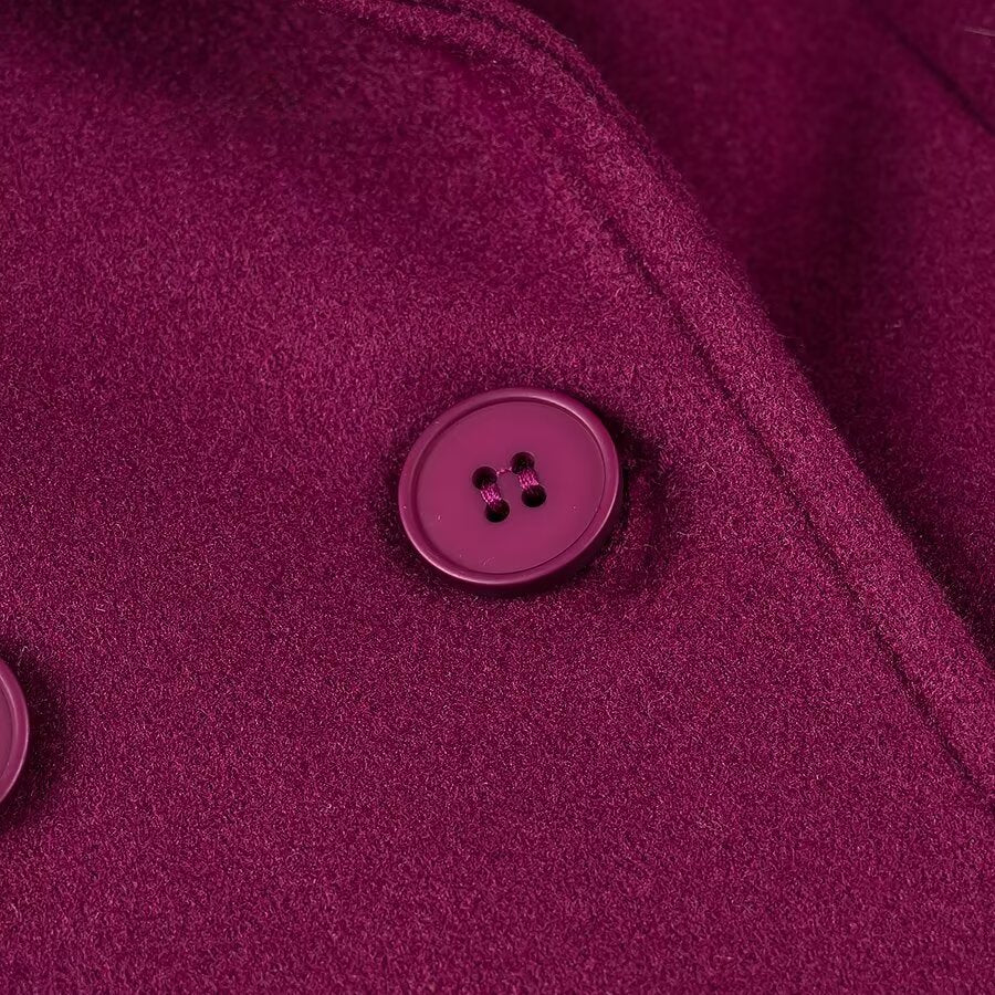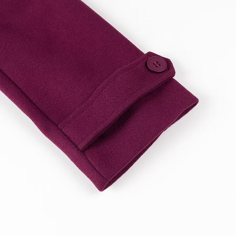 Burgundy Double-Breasted Casual Coat - Long Length with Button & Pocket Detail | Fall/Winter Style