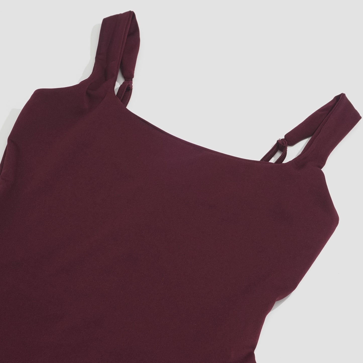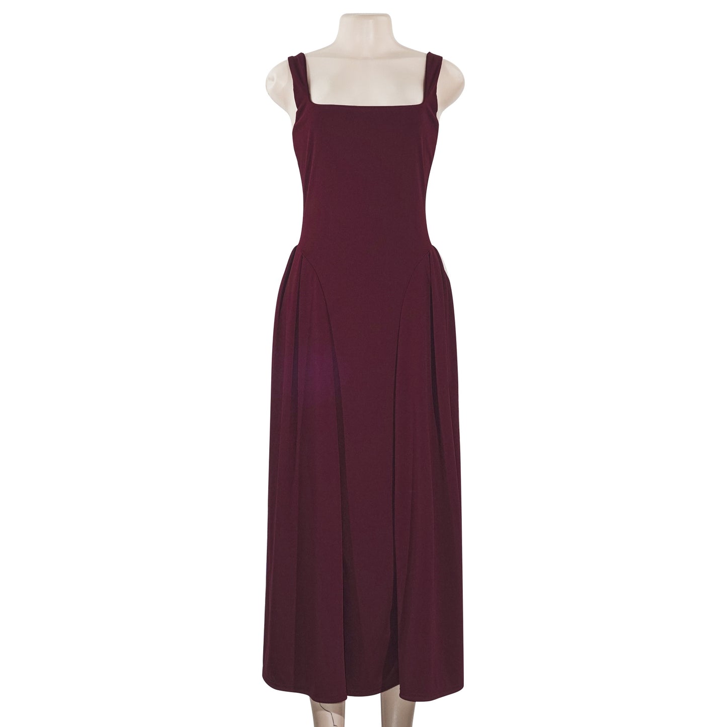 Burgundy Spring 2025 | French Square Collar Retro Slim Fit Sling Dress – Timeless Elegance, Effortless Edge