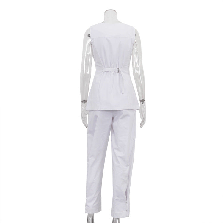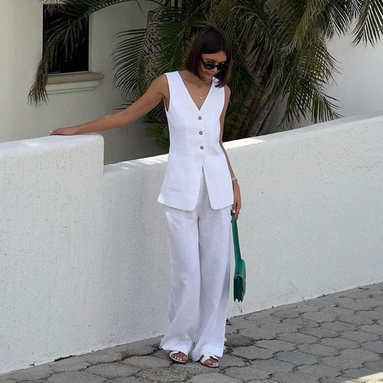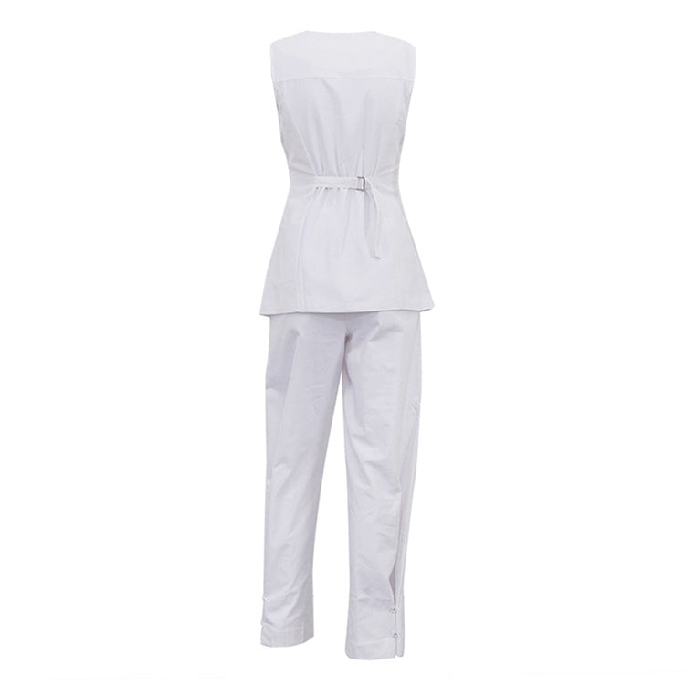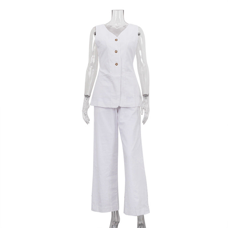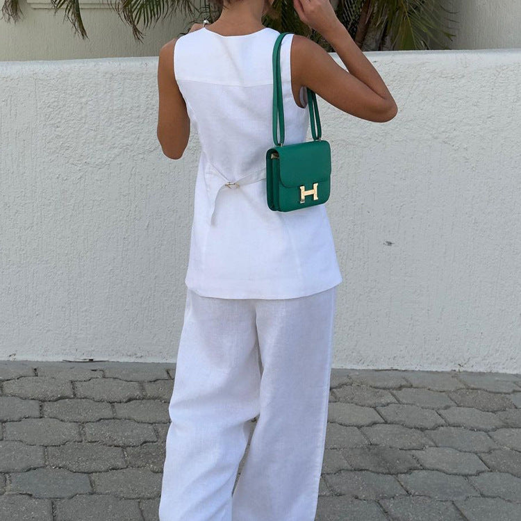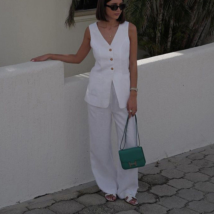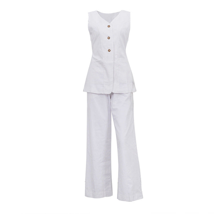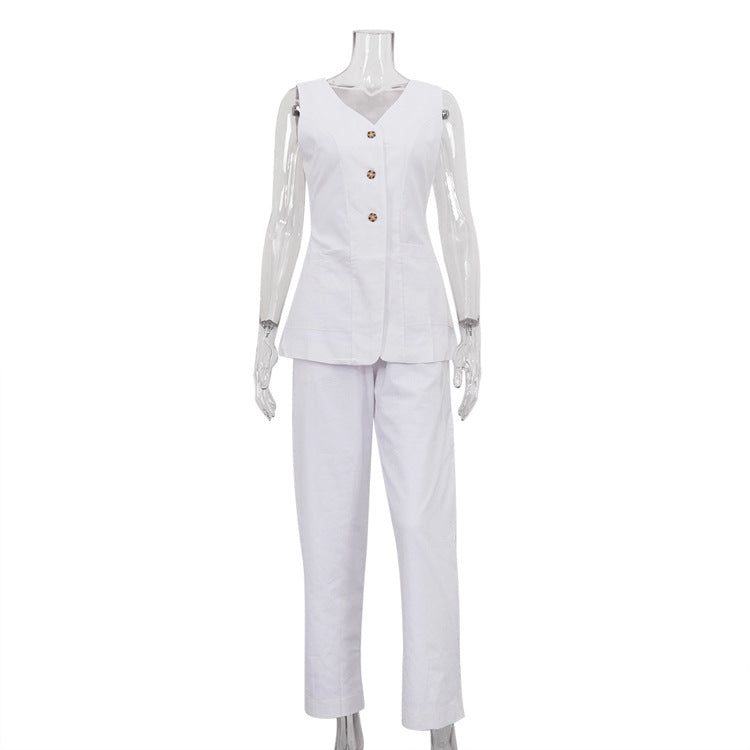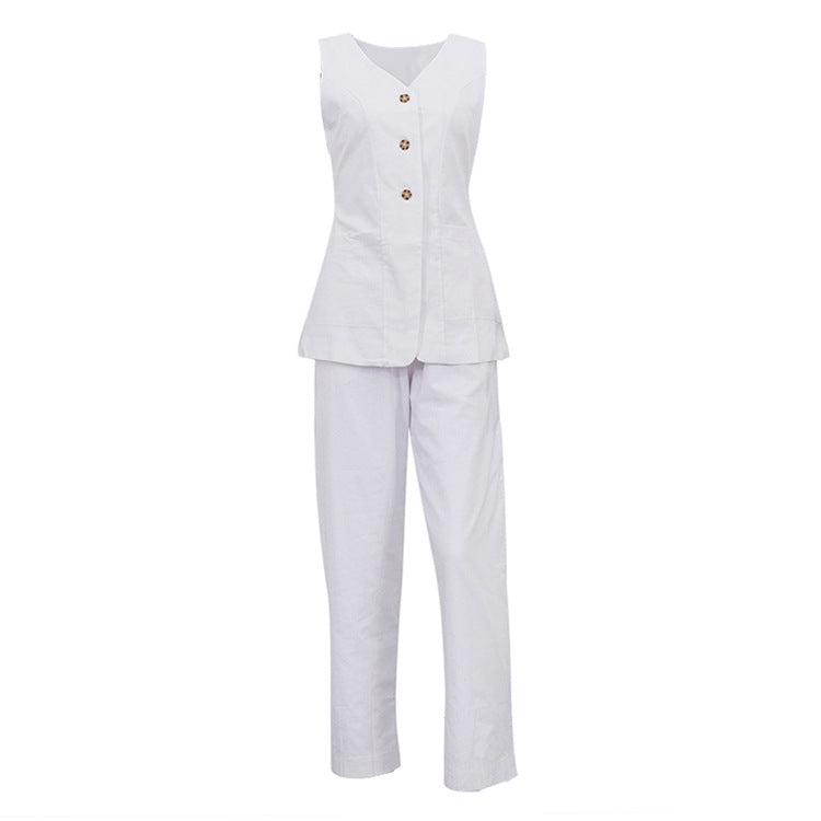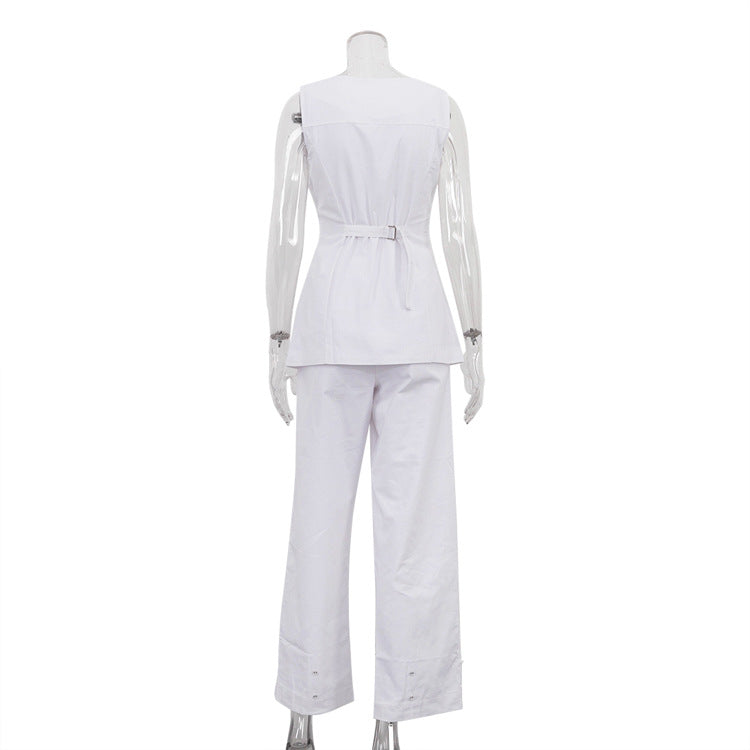 Cotton Waist Slim Vest & Trousers Two-Piece Set - Casual Women’s Outfit | Comfortable Cotton Set