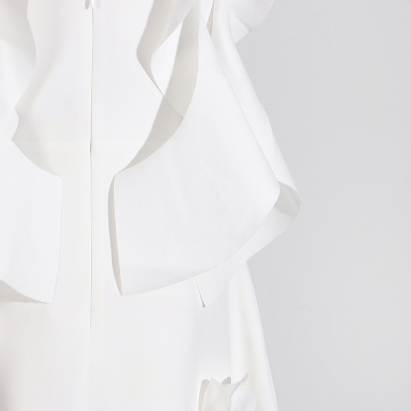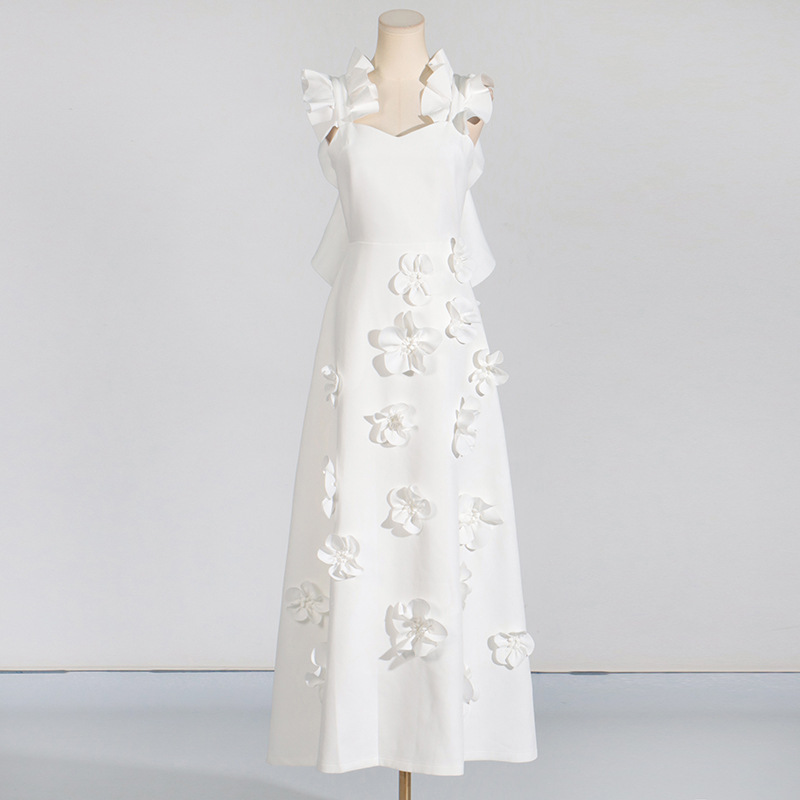 [Éclat Blanc Dress] | High Grade Floral Stitching White Slim Fit Backless Summer Dress – Elegant Women’s Occasion Wear by TGC