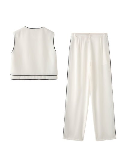 Edge Stitch Set – Contrast Vest + Striped Trousers