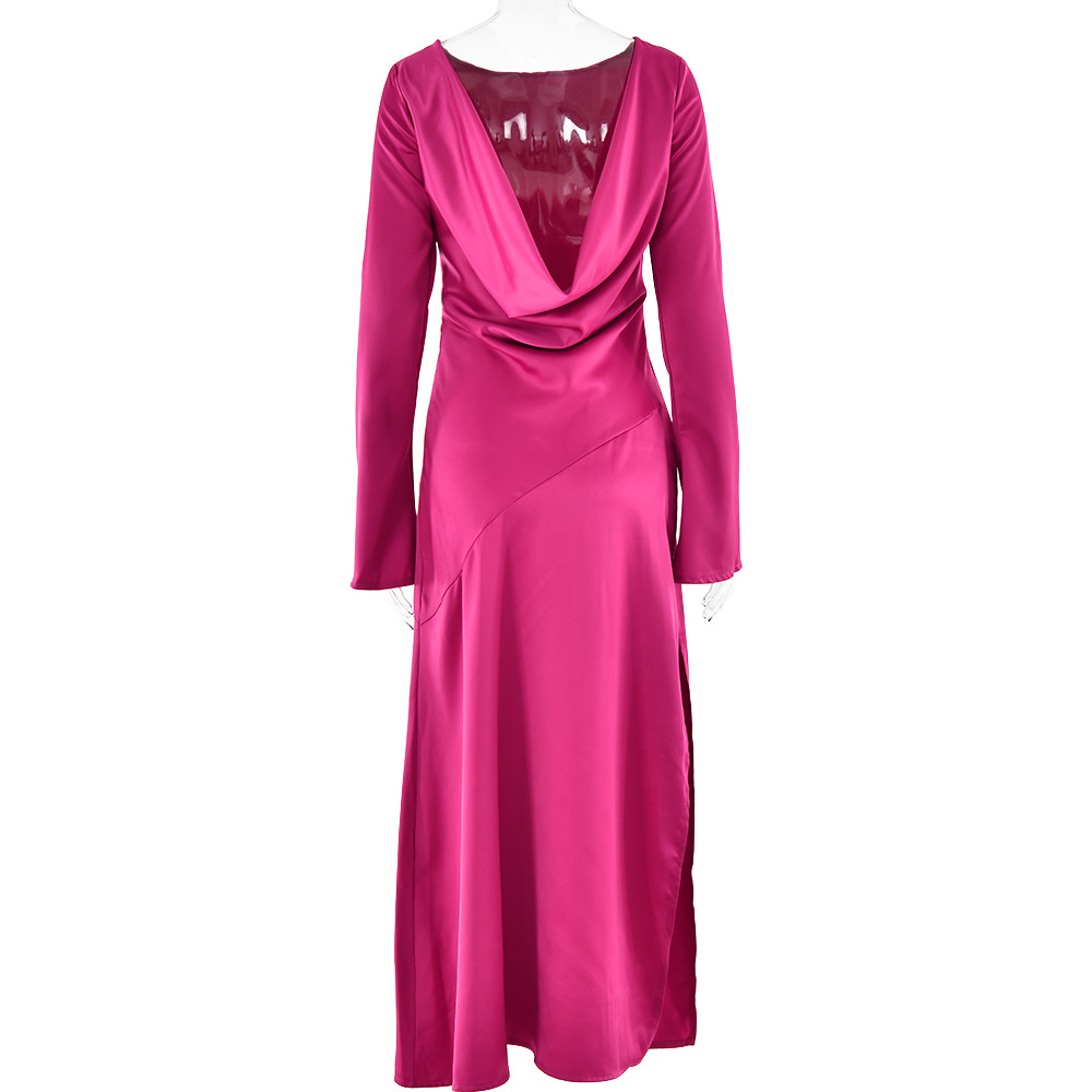 Indulge in grace and allure with the Elegant Backless Pink Satin Long Sleeve Winter Dress. Elevating the elegance of any occasion, this dress is a testament to sophistication and style.