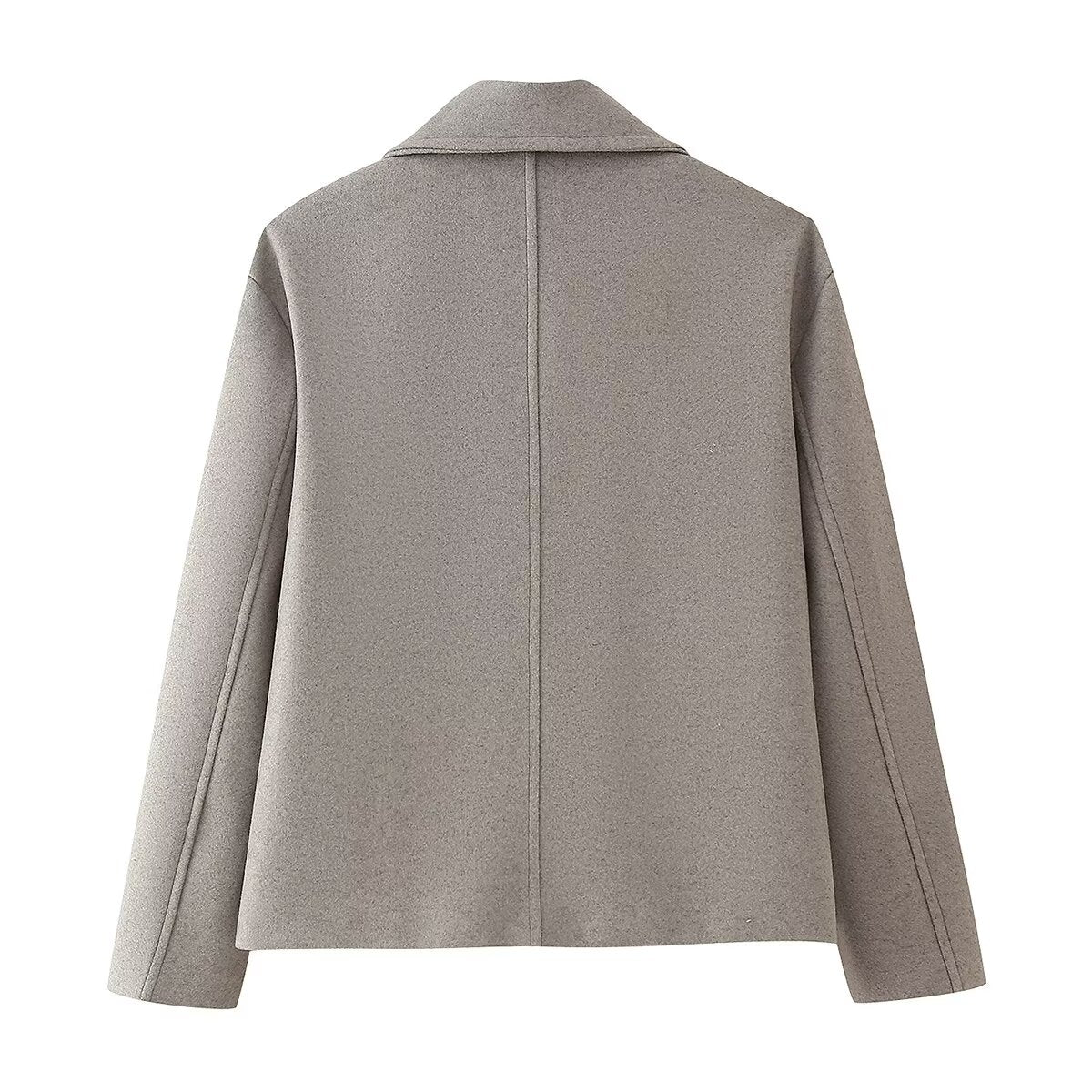 Elegant Gray European Aesthetic Cropped Coat