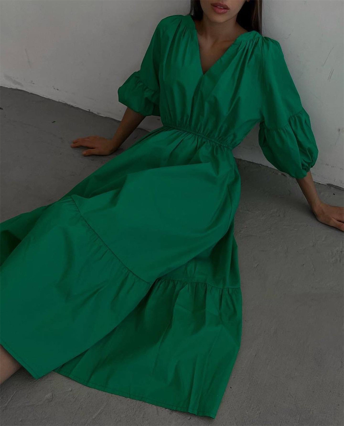 The V-neckline adds a touch of sophistication and femininity to the dress, creating a flattering frame for your décolletage. The high waist design cinches your waistline, creating an hourglass silhouette and enhancing your overall elegance.
