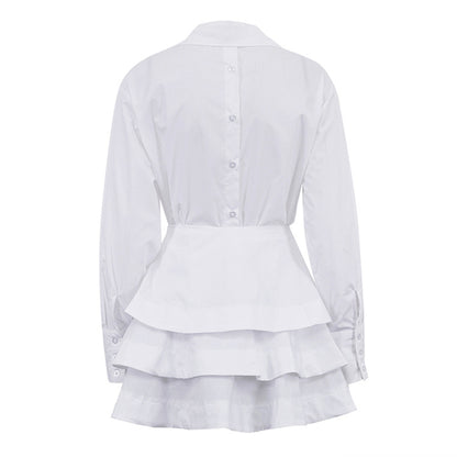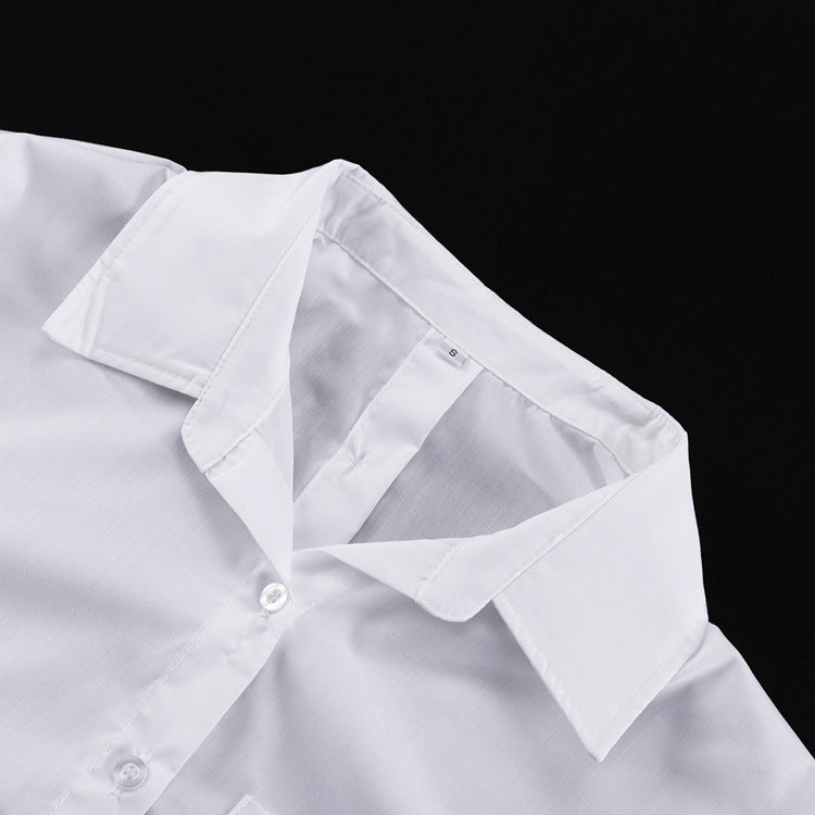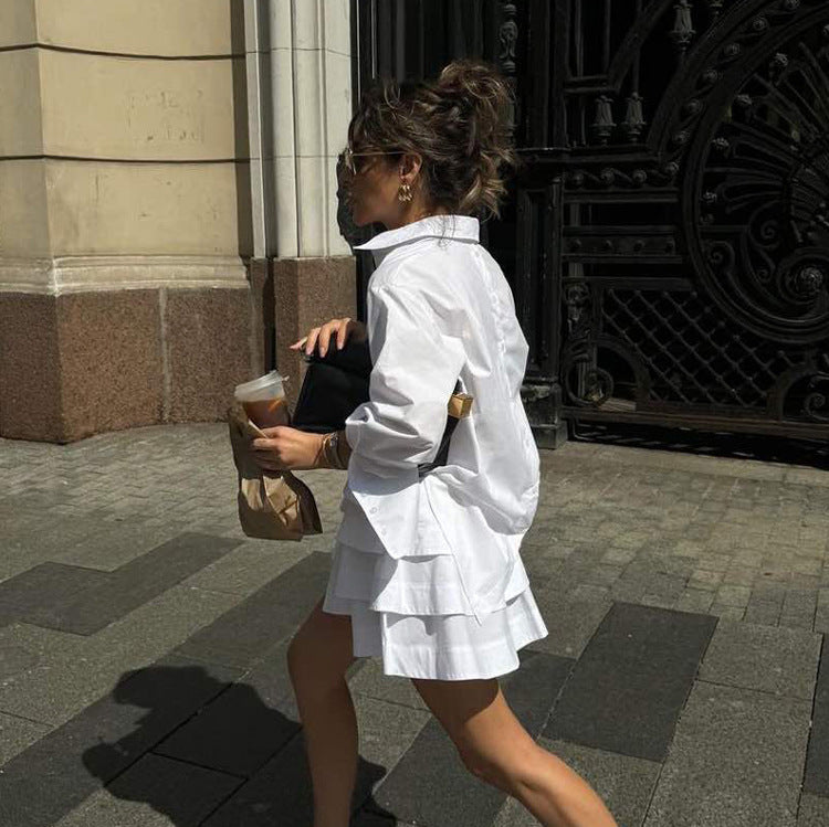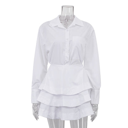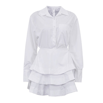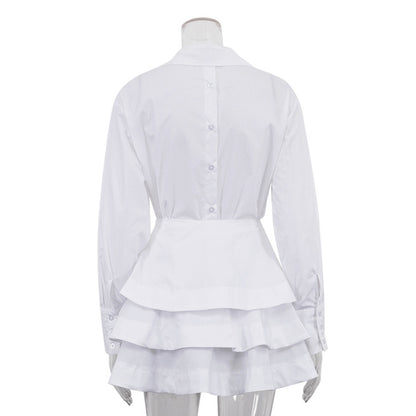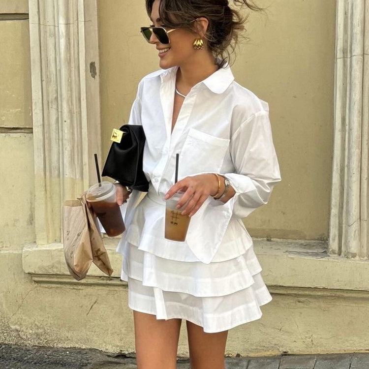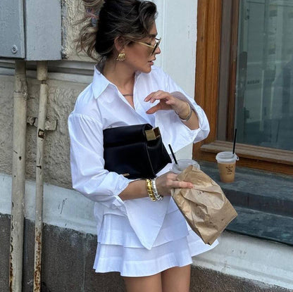 Elegant White Collared Shirt & Mini Skirt Set – Office Casual Two-Piece Spring Outfit