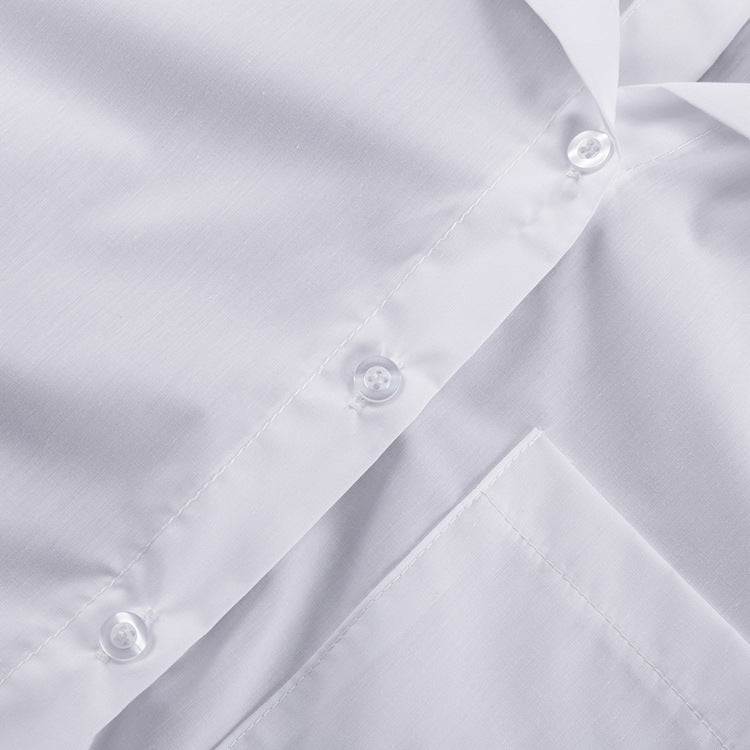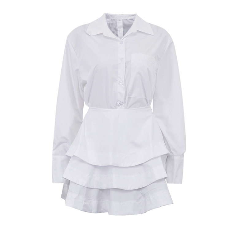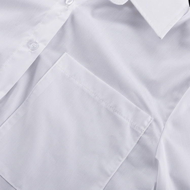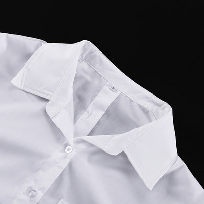 Refresh your wardrobe with this Elegant White Collared Shirt & Mini Skirt Set, designed for a polished and modern look. Featuring a loose fit and crafted from smooth polyester, this two-piece outfit includes a long-sleeved collared top with button, pocket, and zipper detailing, paired with a high-rise short skirt for a flattering silhouette.