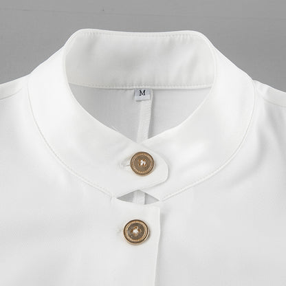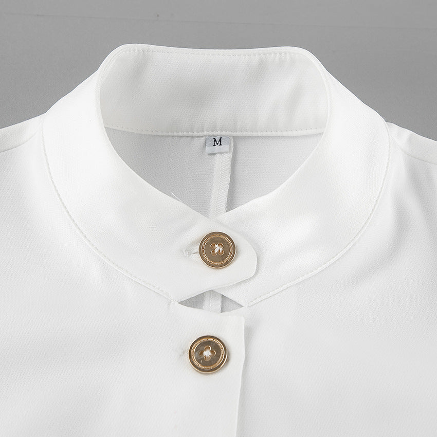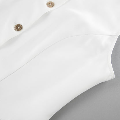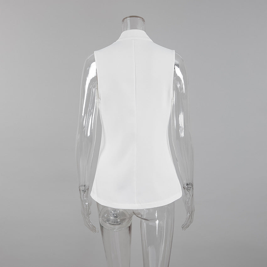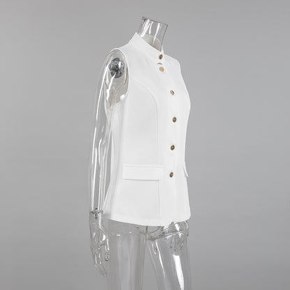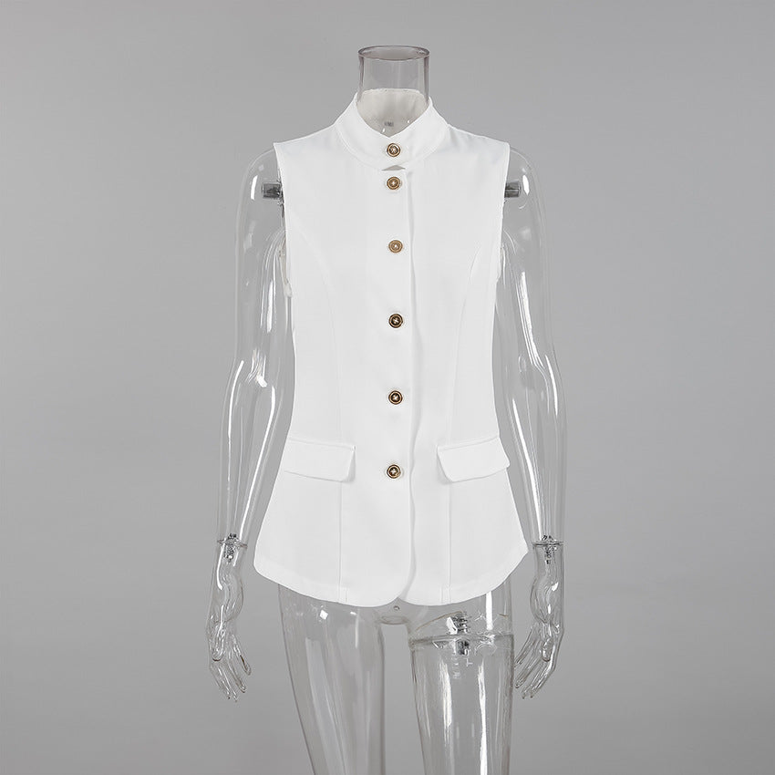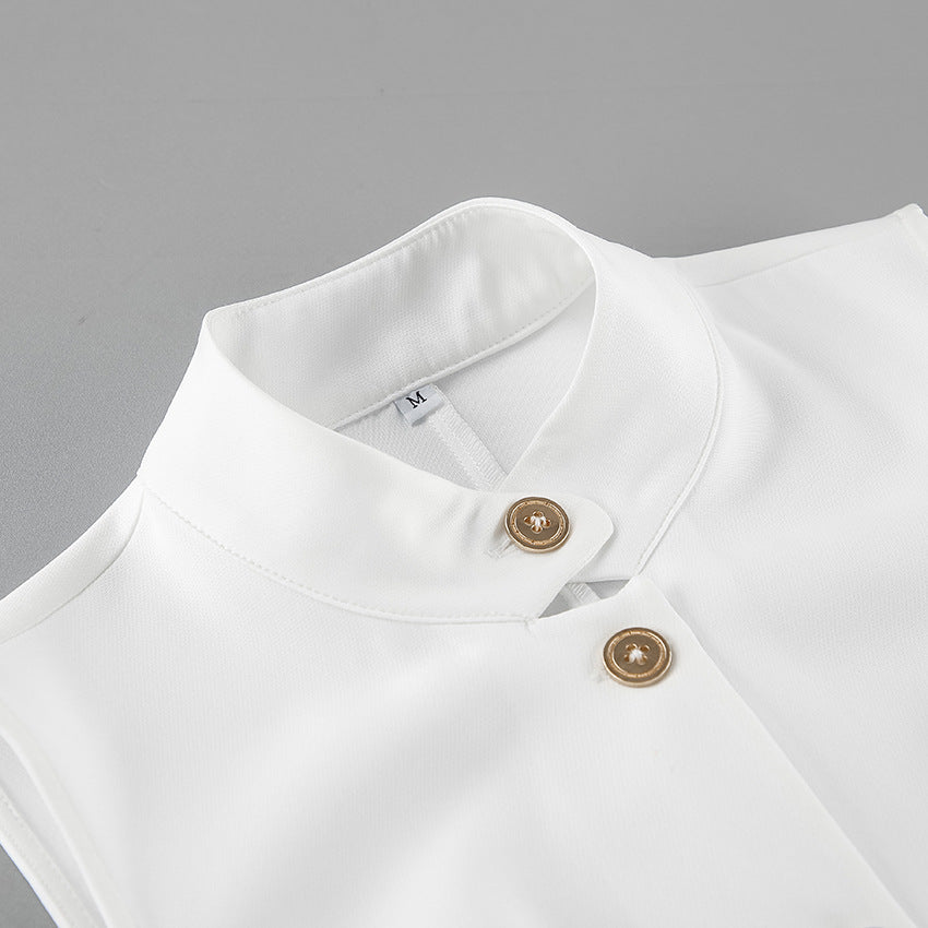 Elegant White Stand Collar Sleeveless Vest Shirt – Office Casual Spring Summer Top
