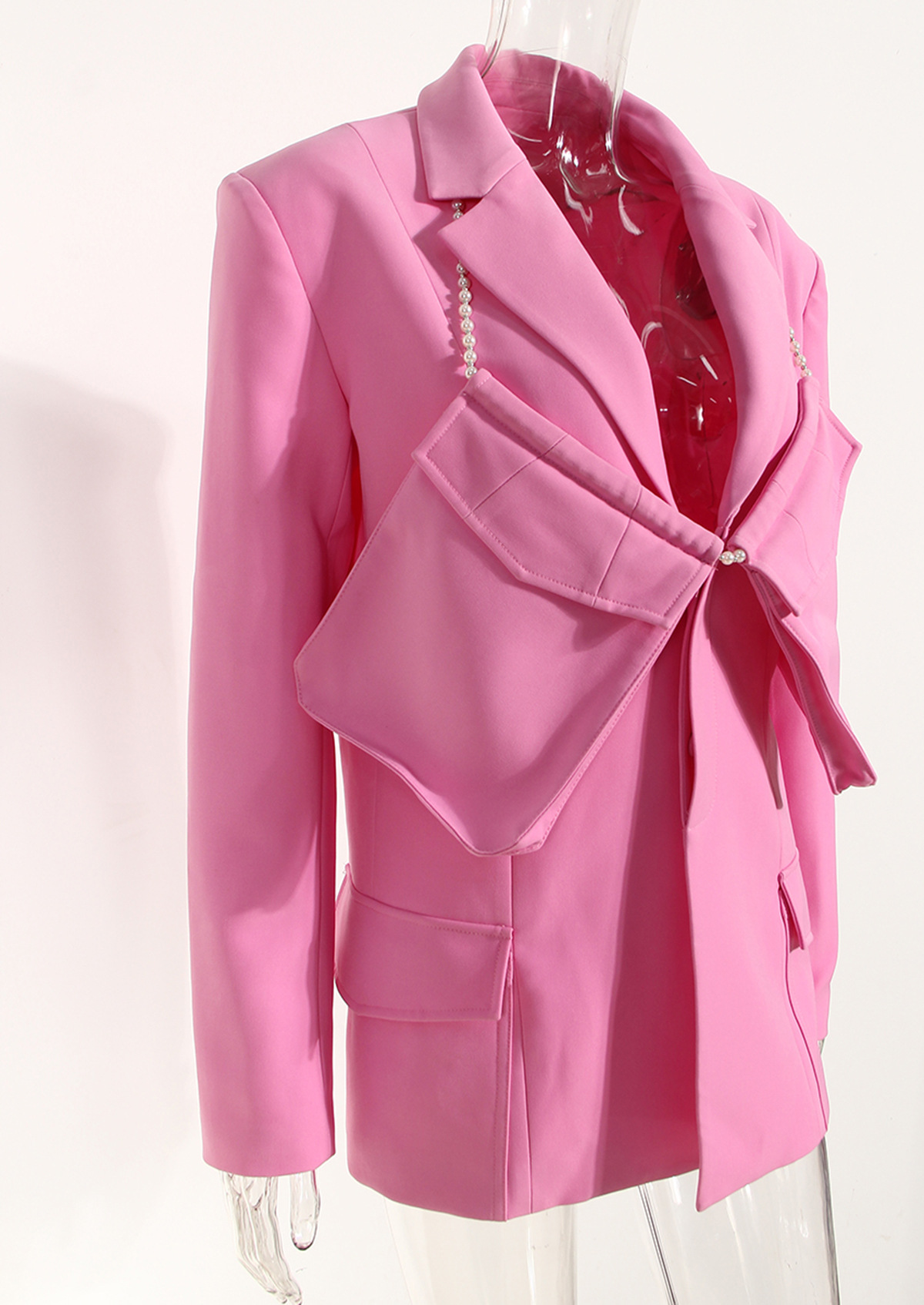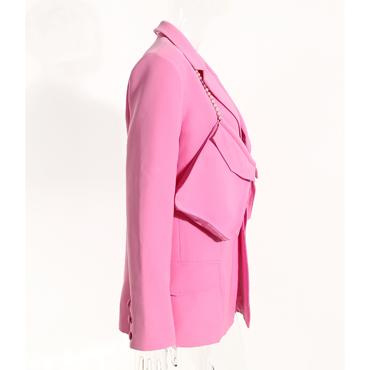 Fall 2023 Fashion Trends | Pink Pearl Pockets Chain Long Blazer,