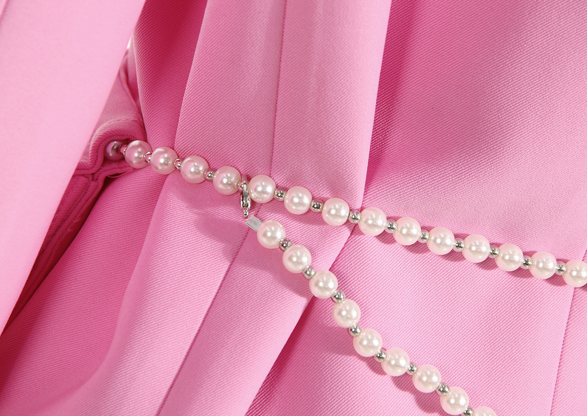 Step into the spotlight of Fall 2023 Fashion Trends with our Pink Pearl Pockets Chain Long Blazer. This exquisite piece encapsulates the essence of elegance and sophistication, making it an essential addition to your seasonal wardrobe.