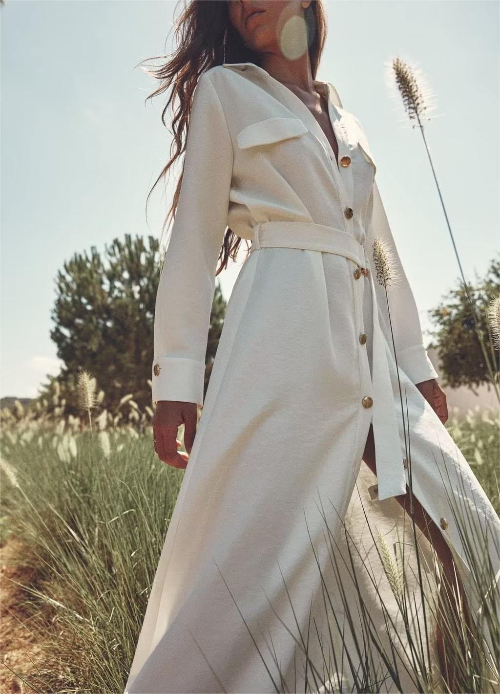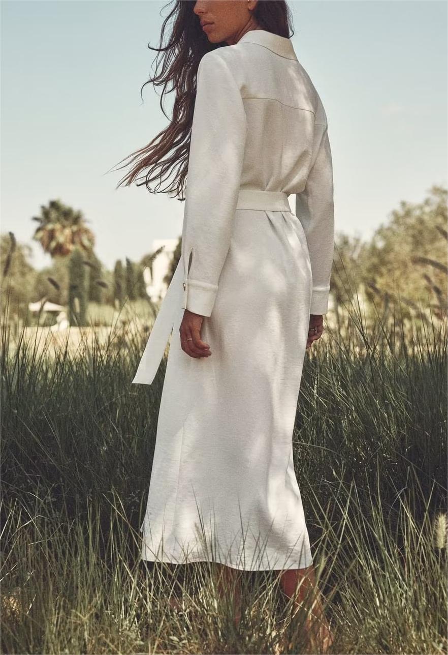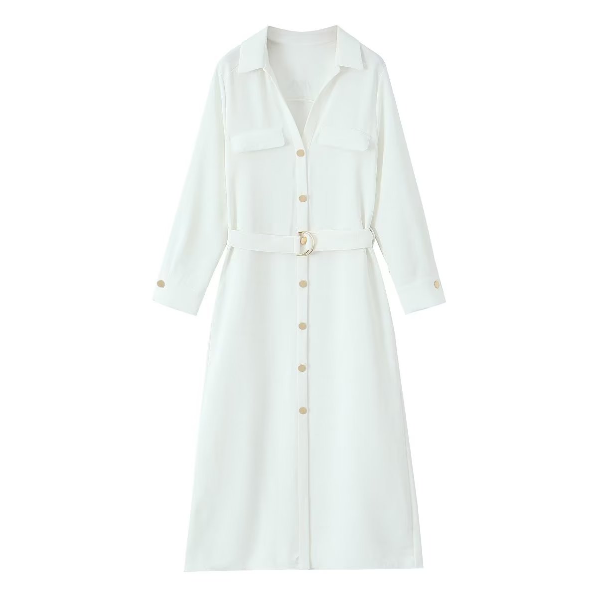 - **Seasonal Adaptability:** The White Elegant Belted Shirt Dress is a perfect choice for the fall season. Its long sleeves and midi length provide the right amount of coverage for cooler weather.