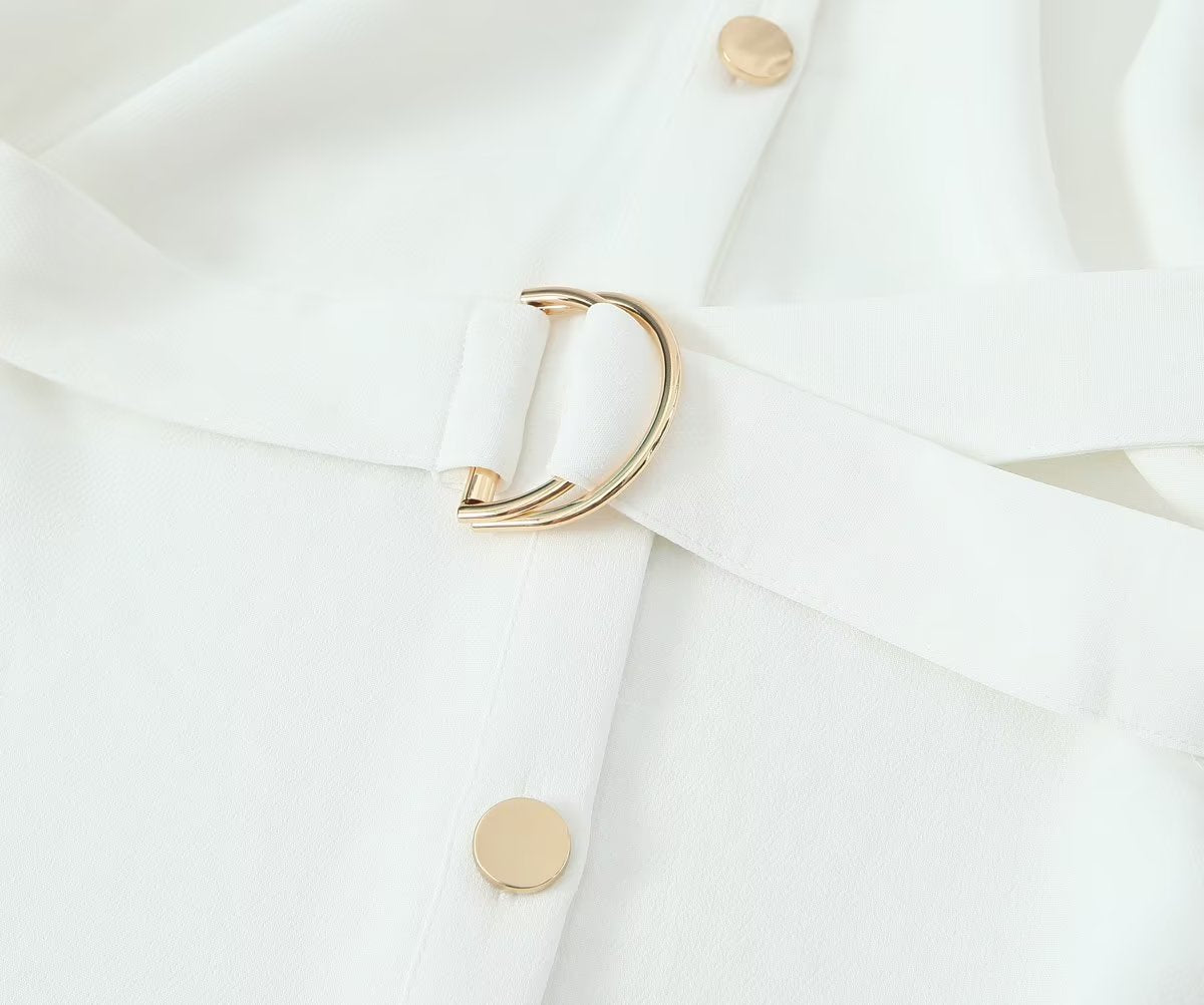 The White Elegant Belted Shirt Dress is a testament to the fact that elegance never goes out of style. With its collared neckline, belted waist, and timeless details, this dress embodies the essence of sophistication. Whether you're headed to the office or a social event, this dress ensures that you're dressed elegantly and confidently for any occasion.