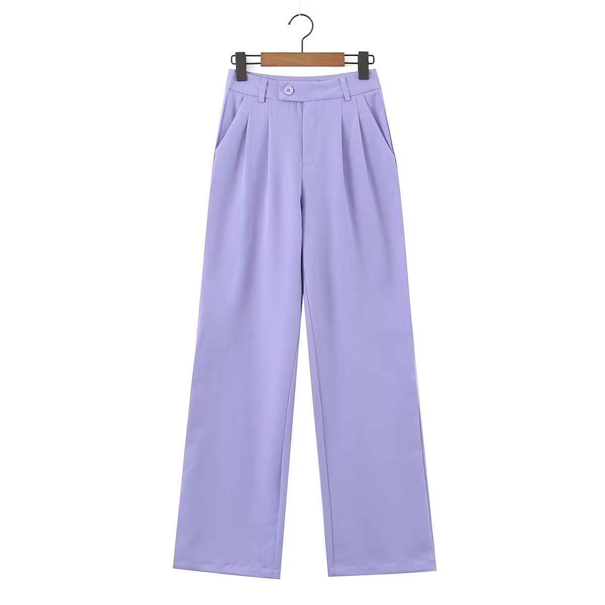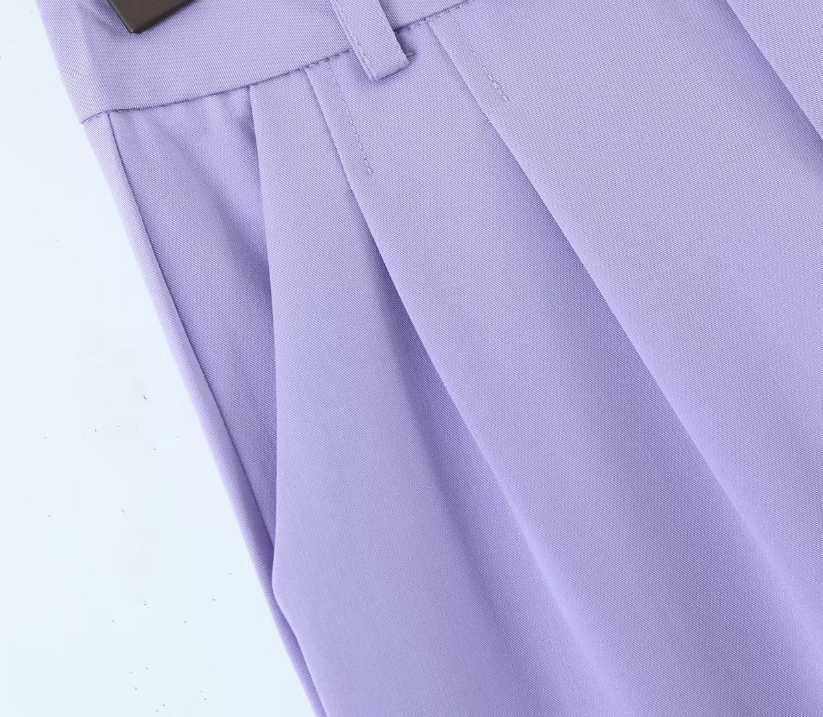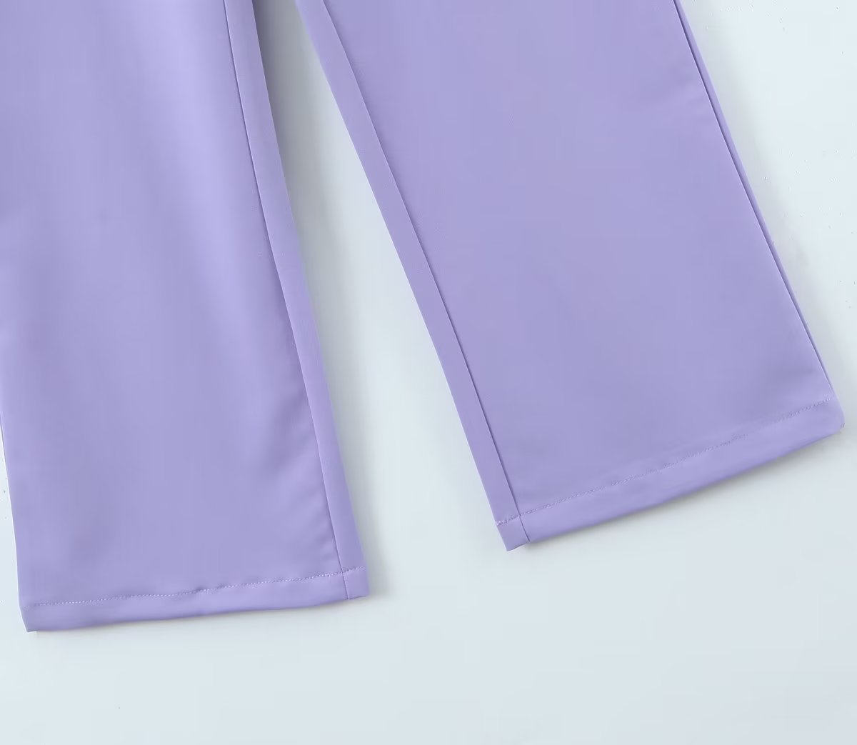This captivating two-piece set features wide leg pants and a crop top, both in a mesmerizing lilac lavender shade. The wide leg pants are designed to elongate your silhouette and provide a flattering and flowy fit. The high waist adds a touch of sophistication and allows for easy pairing with your favorite tops and blouses.