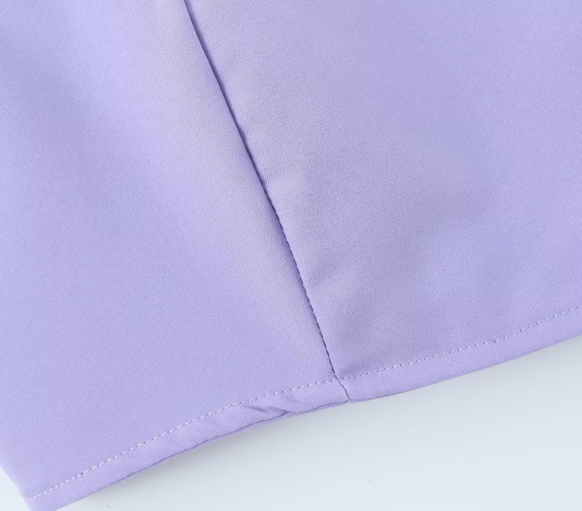 The crop top is the epitome of contemporary chic, featuring a trendy cropped length that accentuates your waistline. The lilac lavender hue adds a soft and feminine touch, making it an ideal choice for both casual and dressier occasions. The outfit can be worn as a coordinated set or mixed and matched with other pieces in your wardrobe for endless styling possibilities.