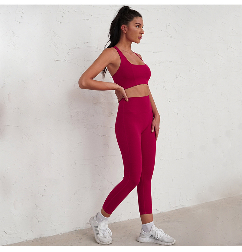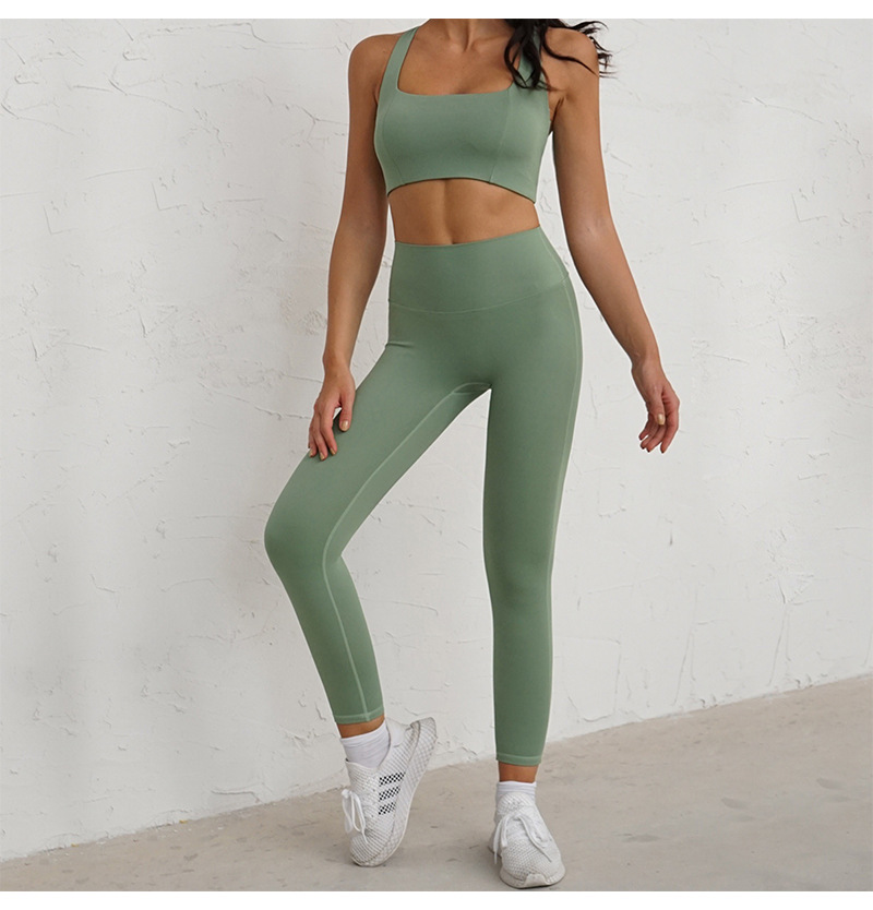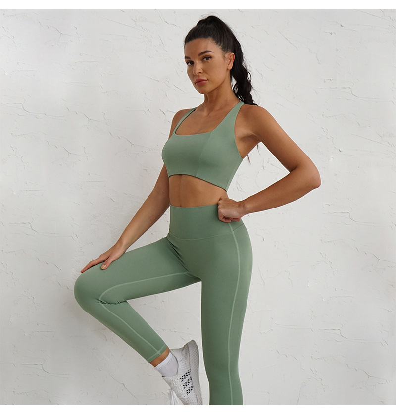 Pair the sports bra top with our High Waist Leggings for a complete and fashionable gym outfit. The high waist design offers tummy control and a secure fit, while the stretchy fabric allows for unrestricted movement. These leggings are crafted with both style and functionality in mind, ensuring you look and feel your best during every workout session.