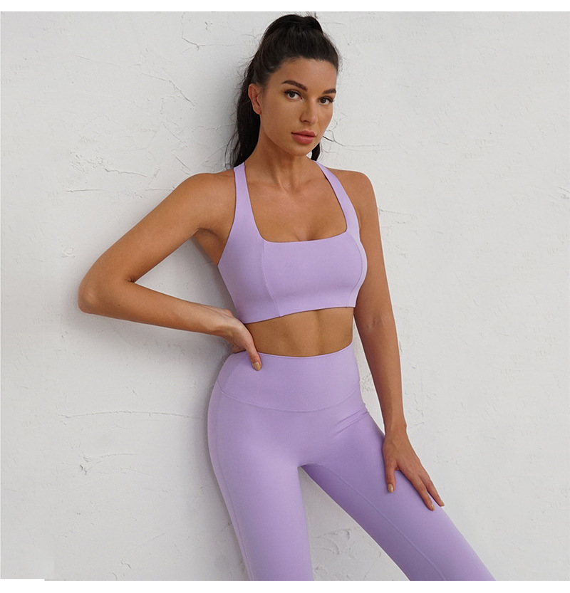 Fashion Trends 2023 | Lilac Sports Bra Top High Waist Leggins Gym Outfit 2-piece Set