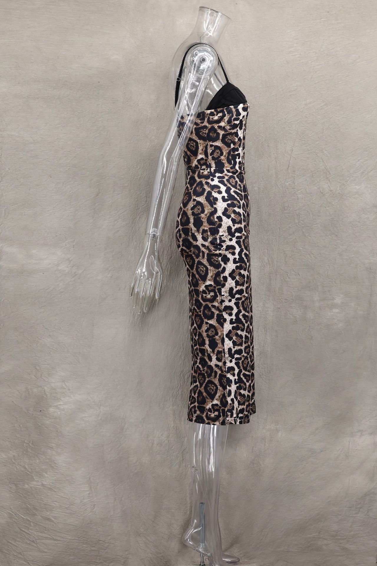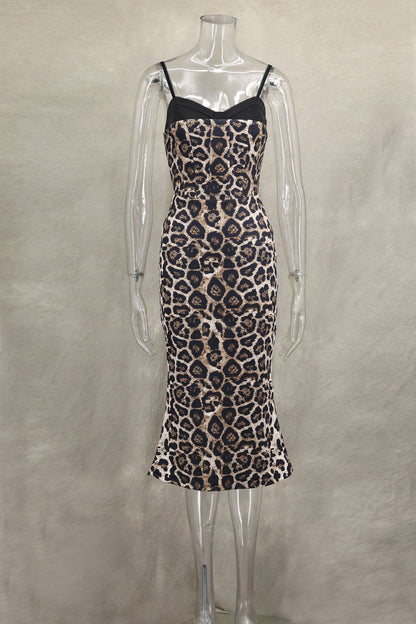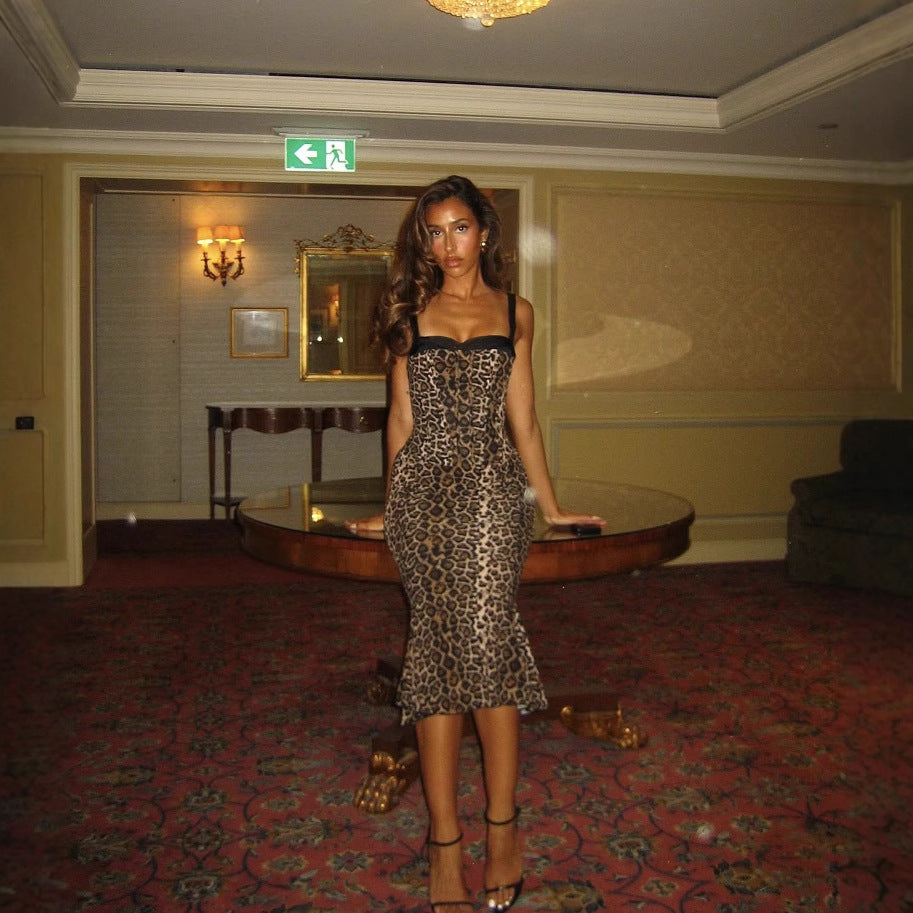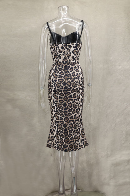 Feline Frame Corset Dress – Lace Contrast Leopard Fishtail Midi