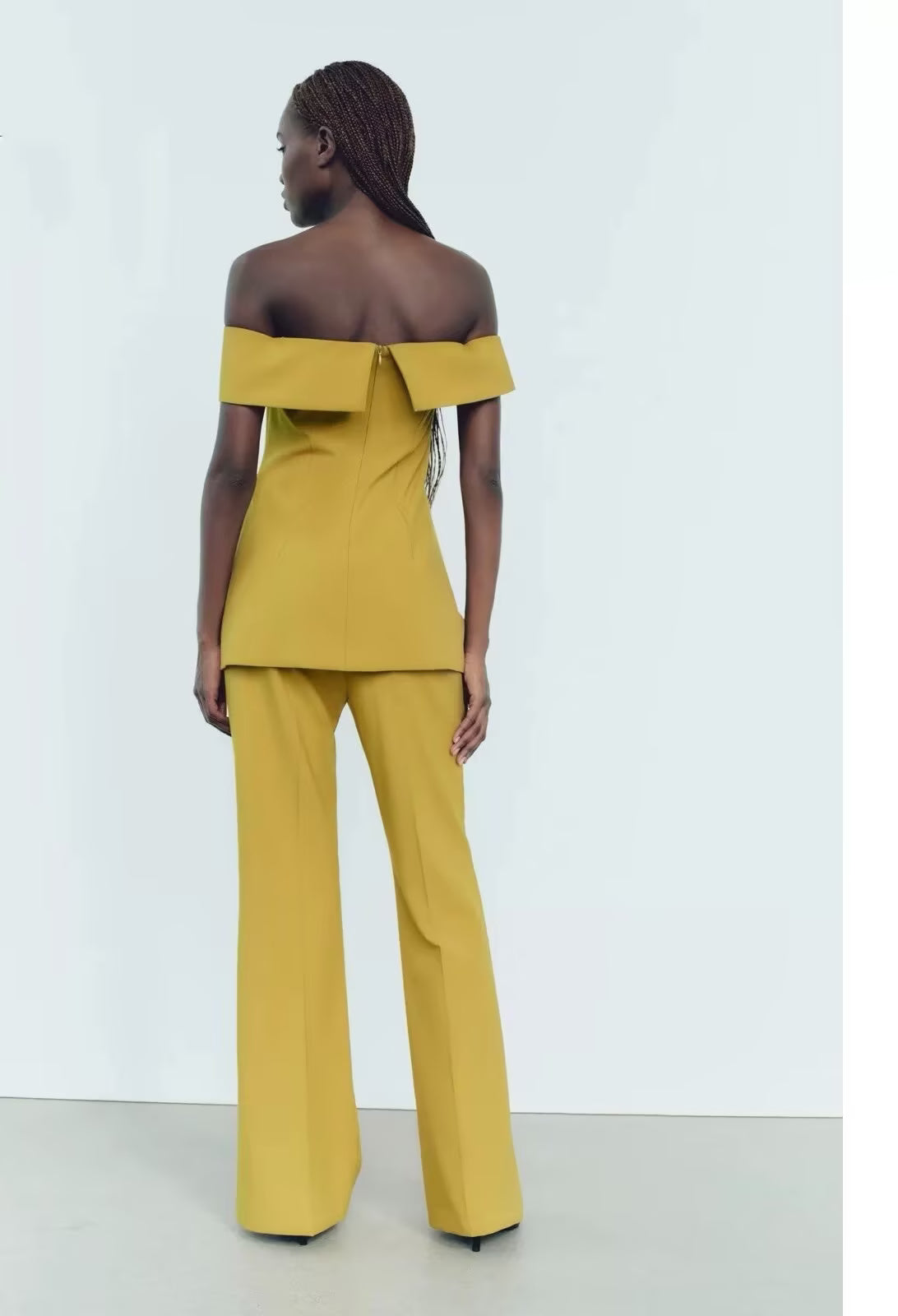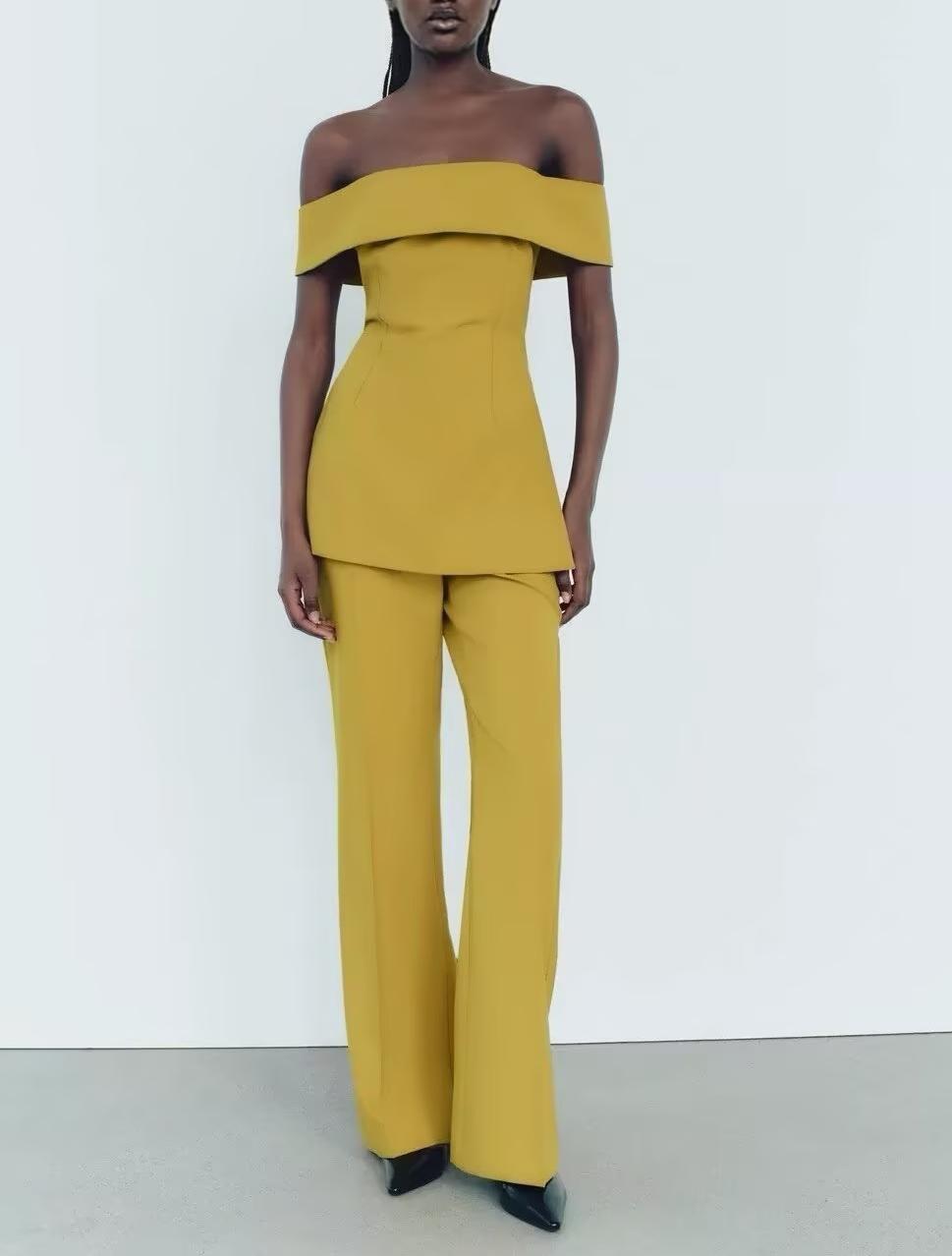 Turn heads with the French Kiss Set, a bold blend of French girl elegance and modern flair. Featuring a sultry off-shoulder side-slit top and dramatic high-rise bell bottom pants, this two-piece look is made for making a statement. The flattering silhouette hugs in all the right places while offering freedom of movement and serious main-character energy. Perfect for Spring soirées, date nights, or that rooftop party you didn’t forget about. Feminine, flirty, and ultra-chic—this is your new power outfit.