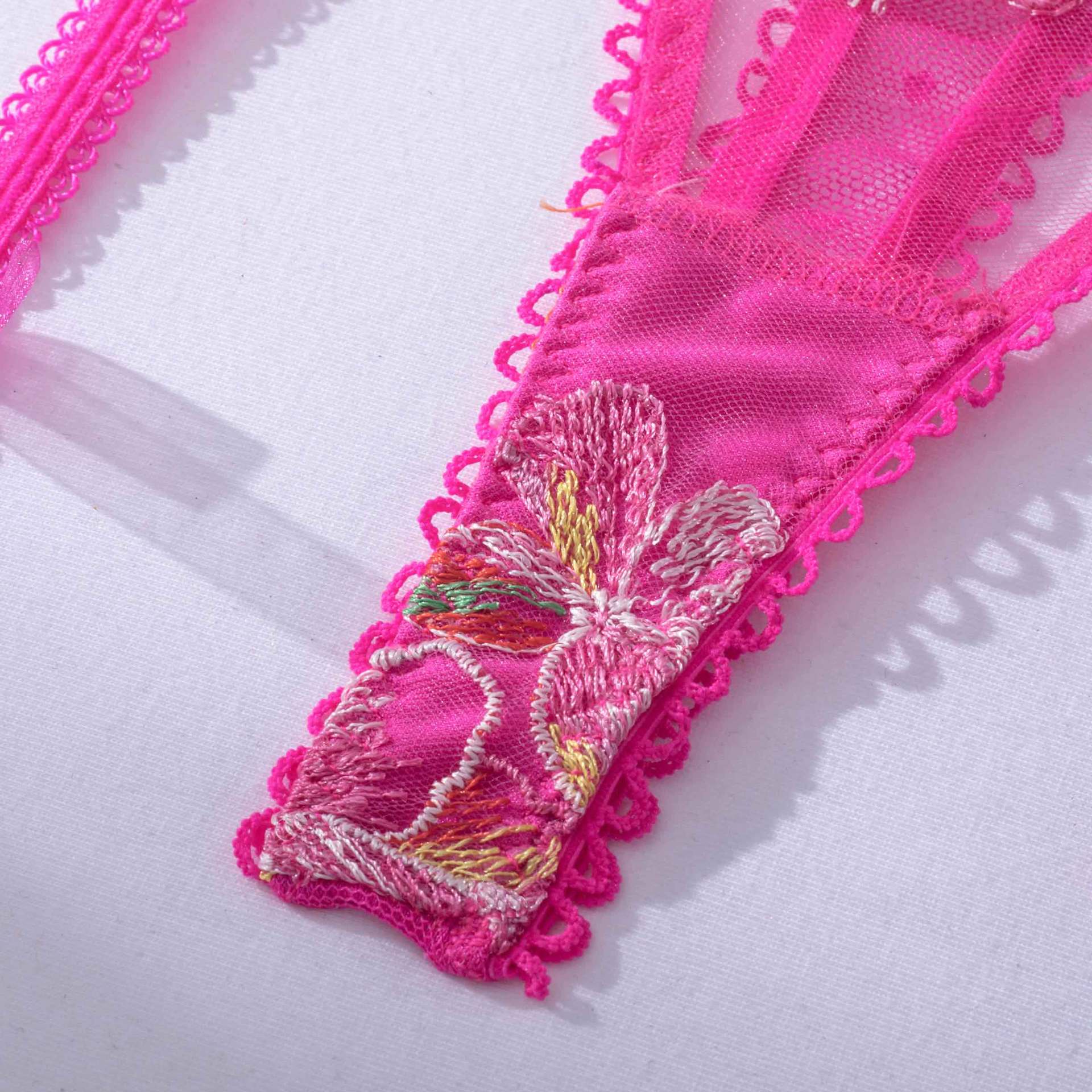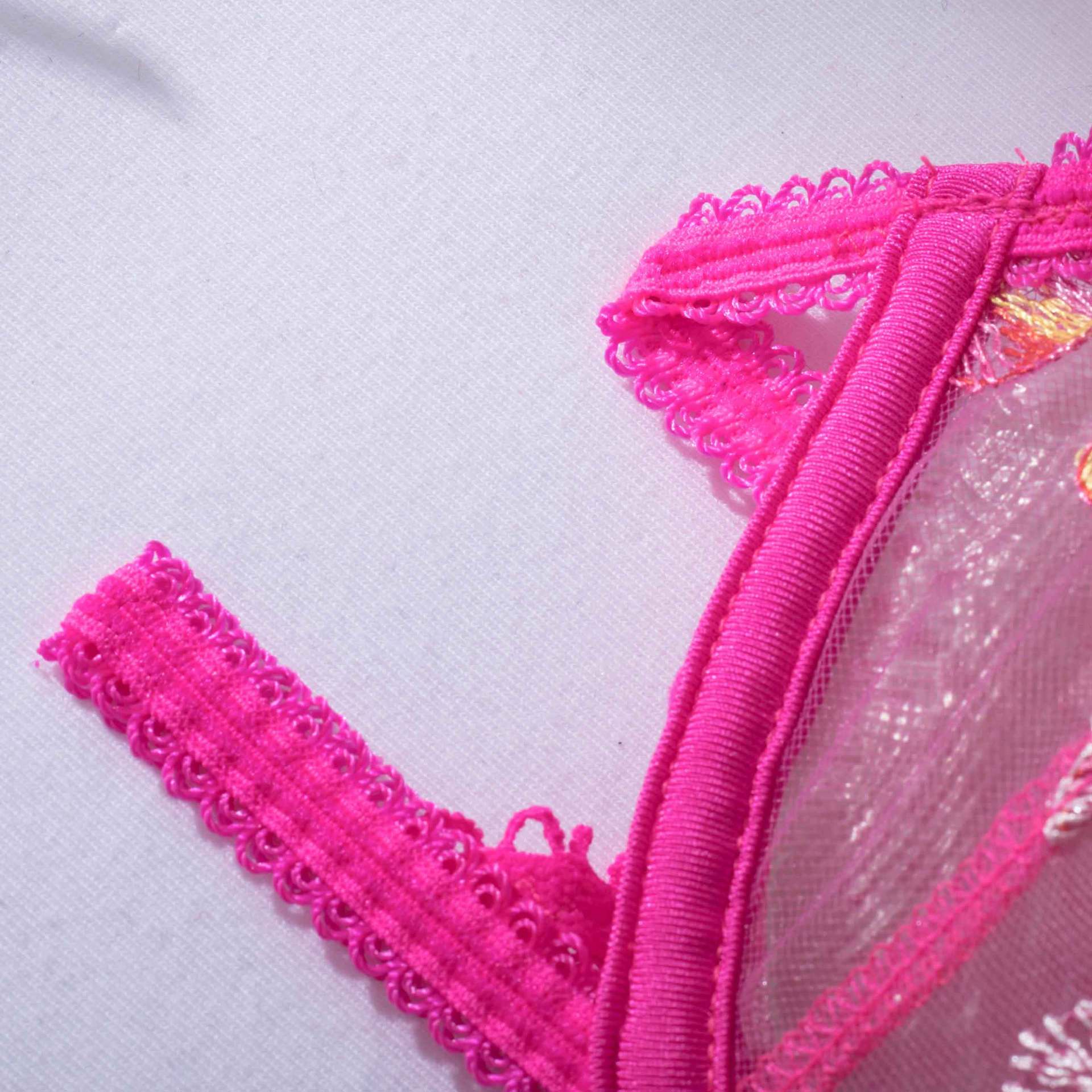 Hot pink aesthetic lingerie outfit, beautiful floral details in lace and hot pink