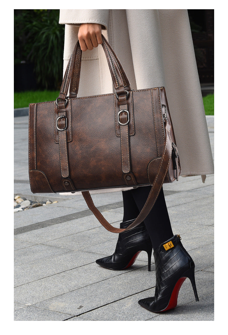 retro women’s handbag, large capacity tote bag, crossbody bag for women, office purse, vintage style handbag, daily carryall bag, women’s shoulder bag, elegant work bag, structured tote for women