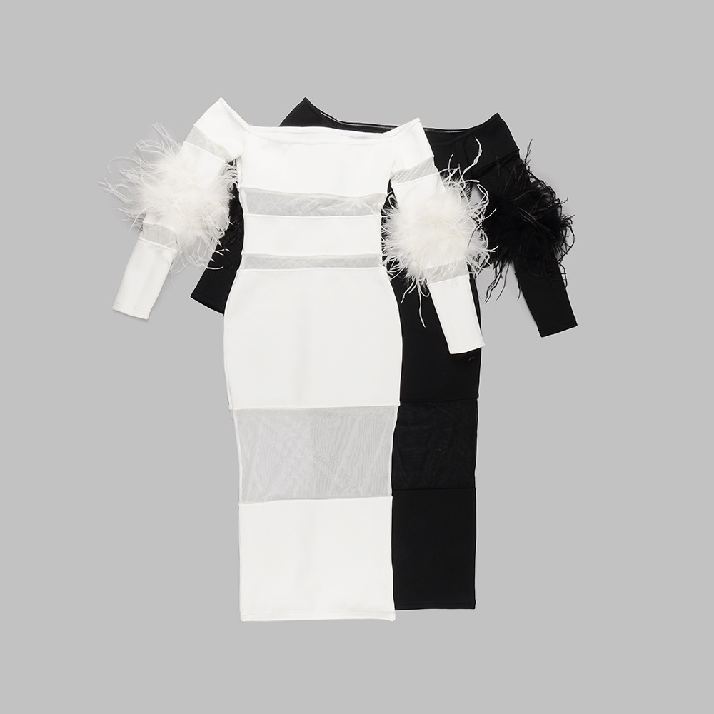 Embrace the allure and elegance of the Feathers See Through Off Shoulder Dress, a runway-inspired ensemble that will make you the center of attention. With its slim fit, captivating design elements, and impeccable craftsmanship, this dress is perfect for formal occasions where you want to make a statement. Step onto the runway of life with confidence and style. #FeathersOffShoulderDress #RunwayInspired #ElegantStyle