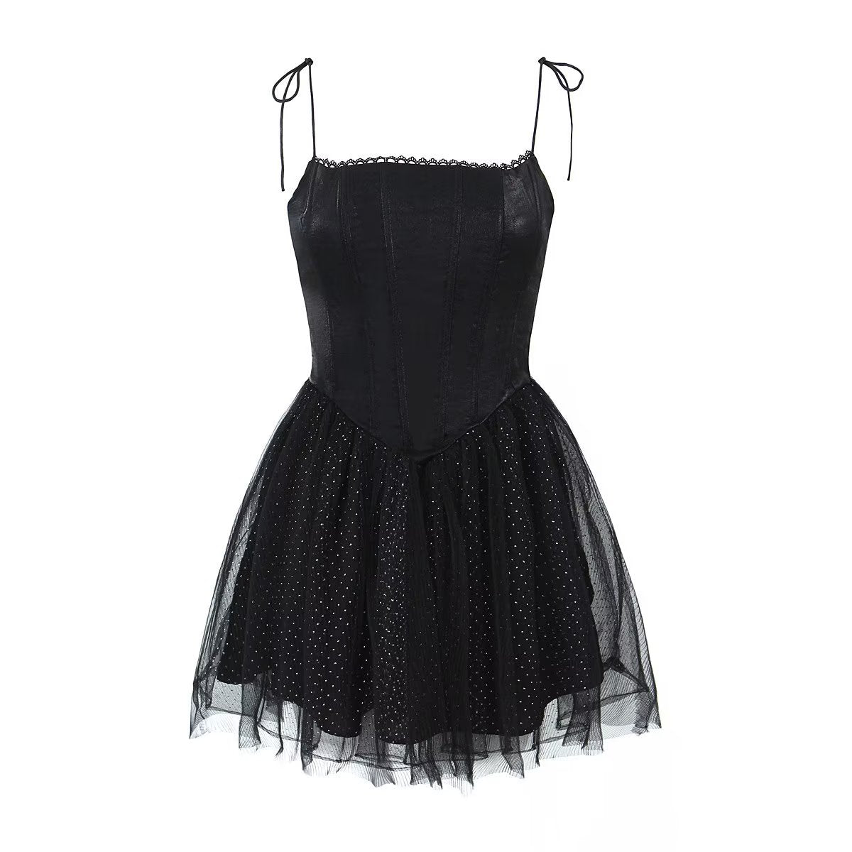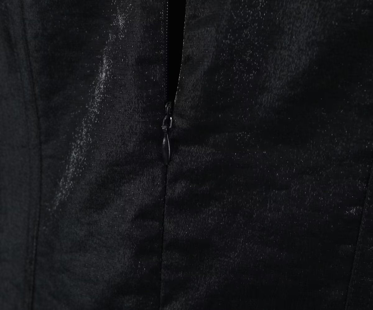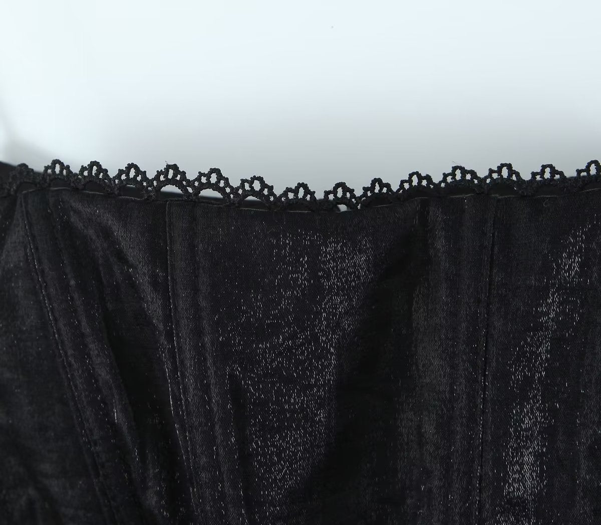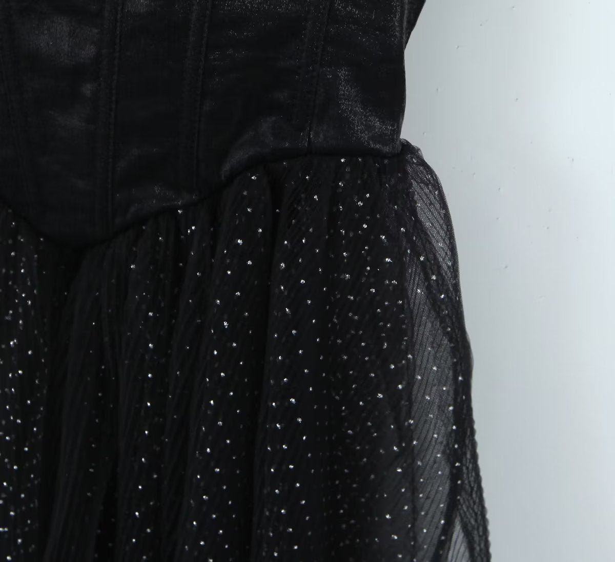 The corset design hugs your curves in all the right places, giving you a flattering and feminine silhouette. The black glitter adds a touch of glam and makes you shine bright like a diamond.
