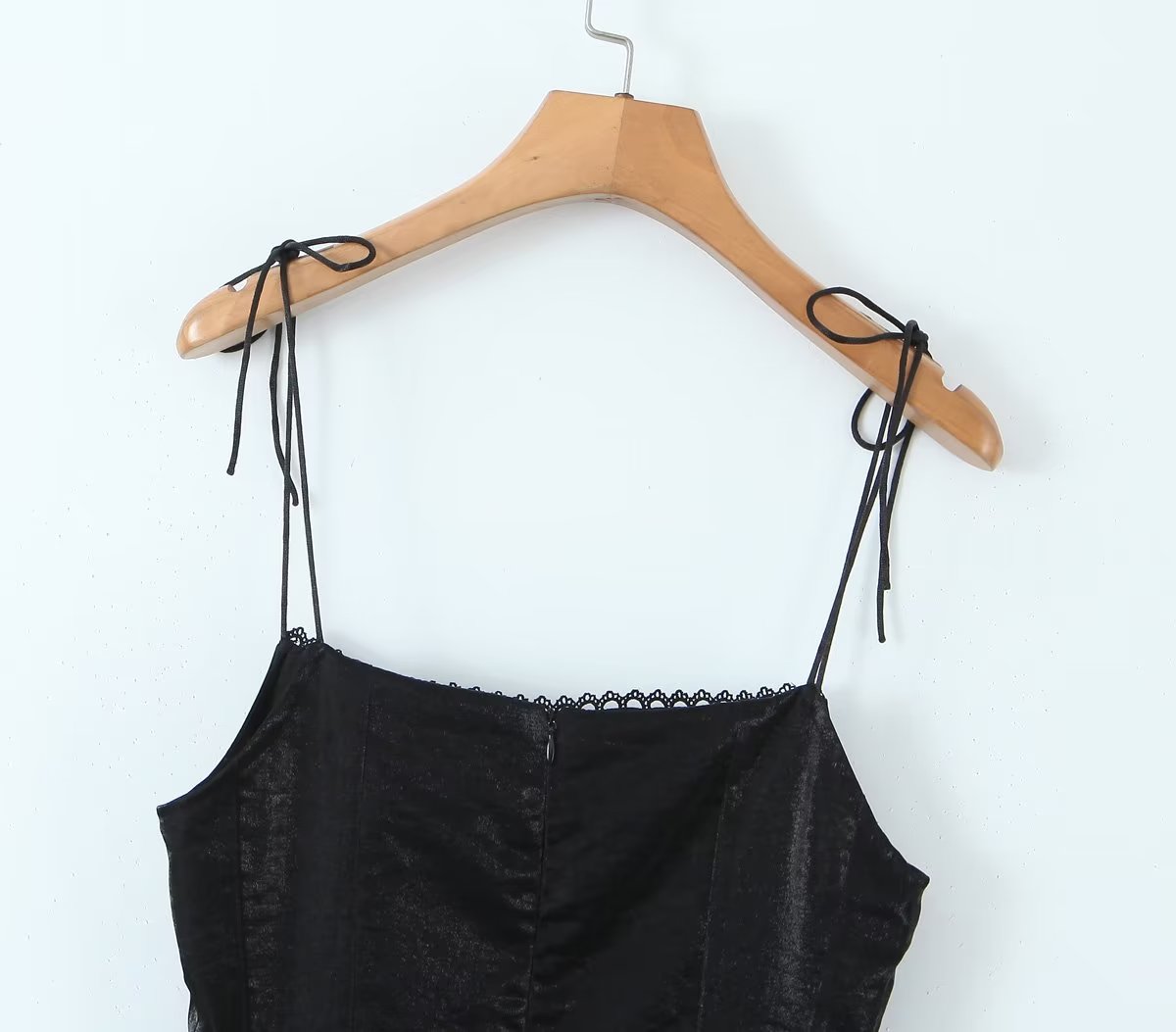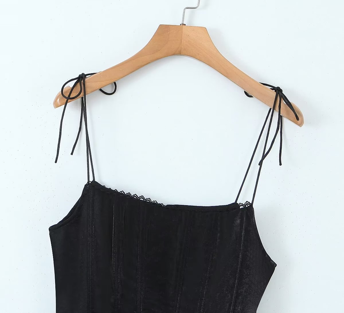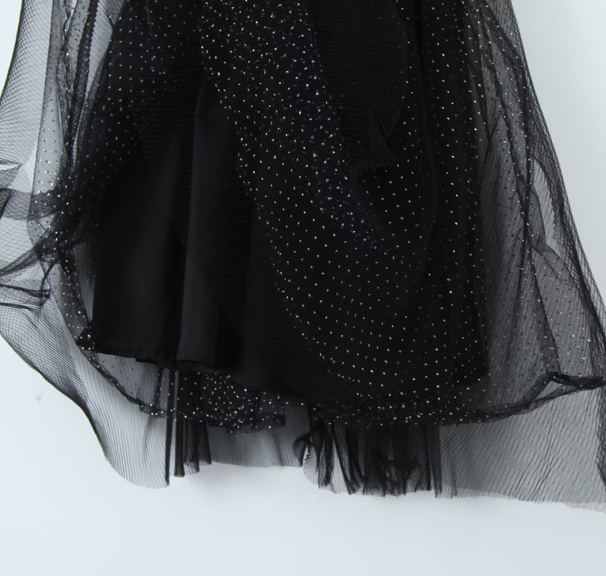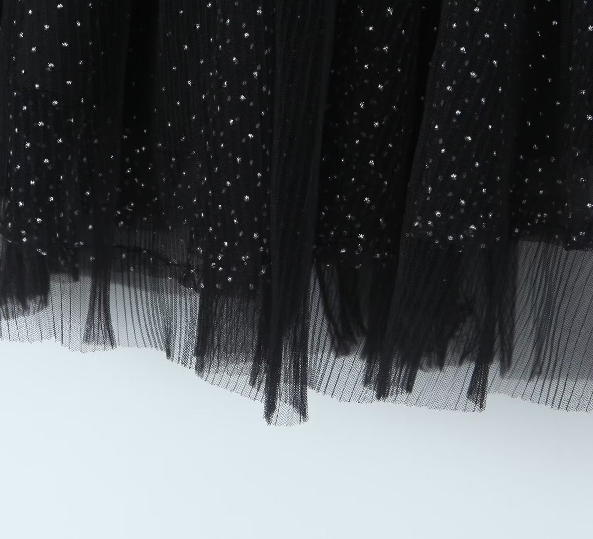 The corset design hugs your curves in all the right places, giving you a flattering and feminine silhouette. The black glitter adds a touch of glam and makes you shine bright like a diamond.